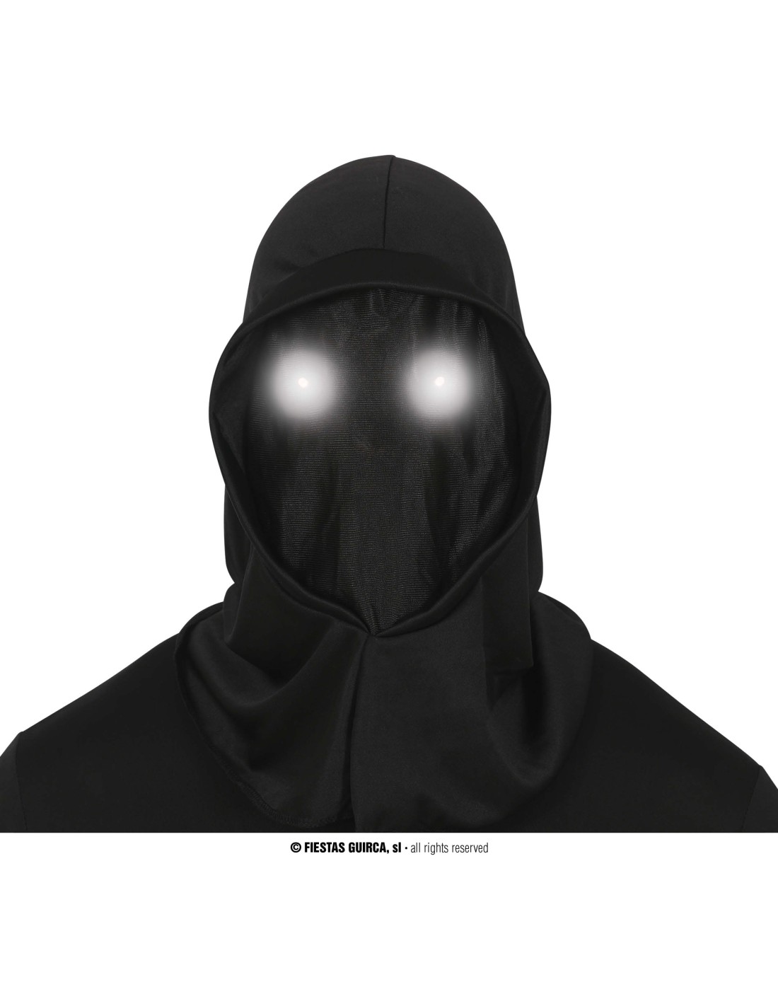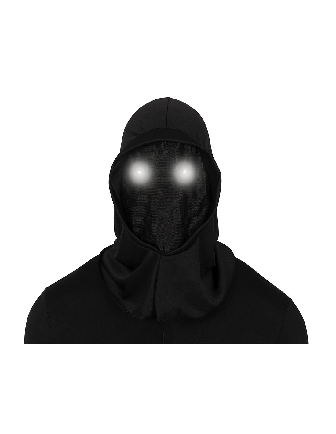 Questo inquietante cappuccio nero con occhi LED luminosi trasformerà il tuo look in una presenza misteriosa e terrificante. Gli occhi si illuminano creando un effetto spettrale che non passerà inosservato nelle notti di Halloween. Il tessuto nero avvolge completamente la testa lasciando solo gli occhi LED visibili, garantendo un anonimato totale e un impatto scenico devastante. Perfetto per chi vuole incutere timore e creare atmosfere da brivido.