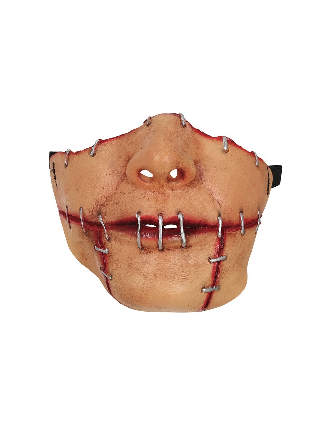 Questa inquietante maschera mezzo viso con bocca cucita in lattice è perfetta per trasformarti in un personaggio da incubo. Realizzata in lattice flessibile, copre la parte inferiore del viso lasciando scoperti gli occhi per una visibilità ottimale. I dettagli delle cuciture rosse sulla bocca e il realismo della pelle creano un effetto terrificante che farà rabbrividire chiunque ti incontri. La maschera si adatta comodamente grazie all'elasticità del materiale.