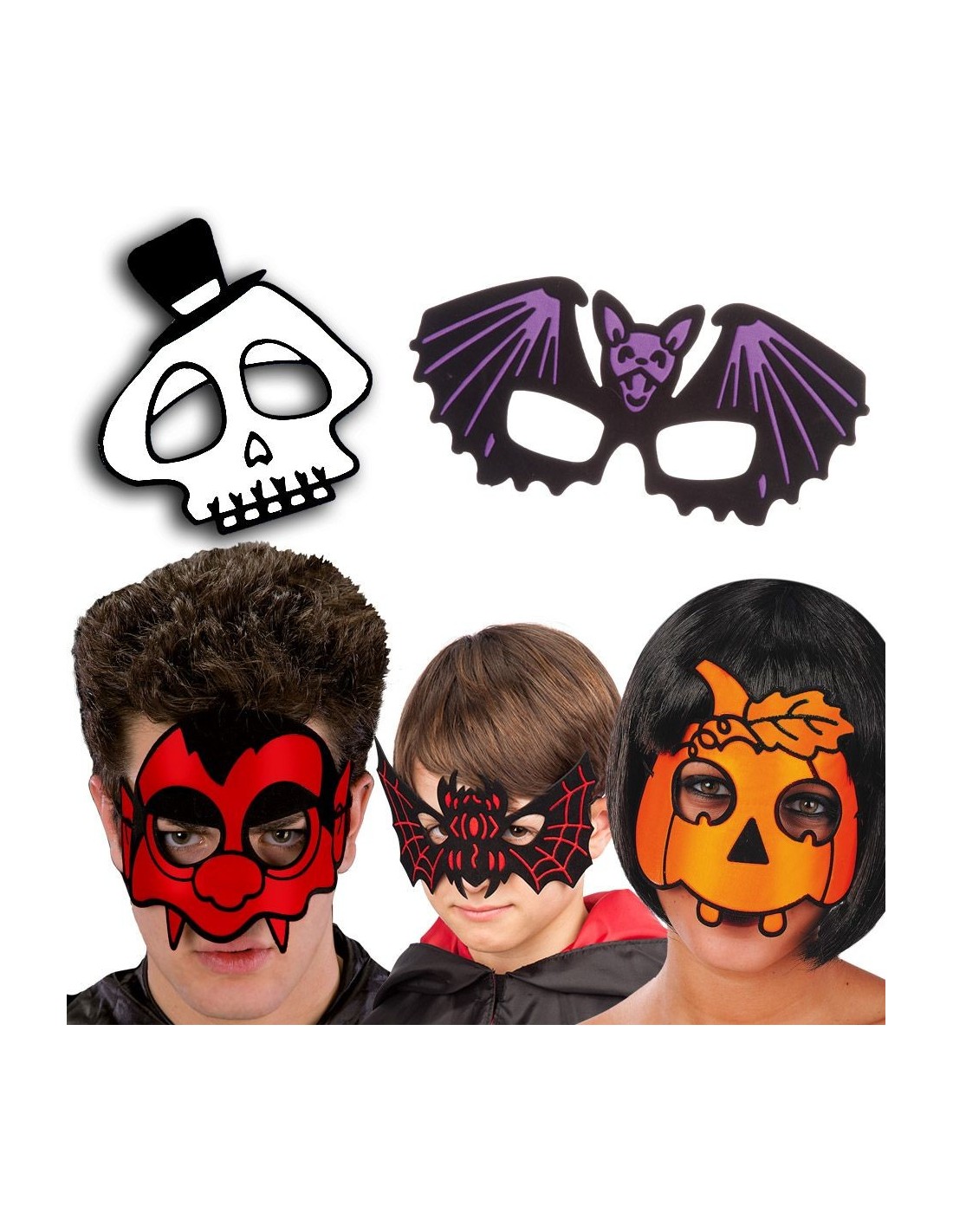 Questo set comprende 5 diverse maschere per il mezzo viso realizzate in tessuto rifrangente, perfette per creare look spaventosi e originali. Il pacchetto include: maschera teschio con cappello a cilindro, maschera pipistrello viola, maschera demone rosso, maschera ragno e maschera zucca arancione. Il tessuto rifrangente crea effetti visivi particolari sotto le luci, rendendo ogni maschera ancora più d'impatto. Ogni maschera è dotata di elastico per il fissaggio comodo e sicuro.