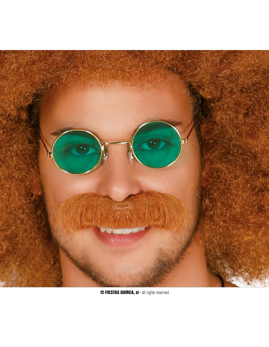 Gli occhiali hippie verdi sono l'accessorio perfetto per completare il tuo look retrò degli anni '70. Caratterizzati da lenti circolari colorate di verde e montatura dorata in metallo, questi occhiali richiamano lo spirito peace and love dell'epoca hippie. Il design vintage con lenti rotonde tinte conferisce un aspetto autentico e riconoscibile, ideale per trasformarsi in un vero figlio dei fiori. L'accessorio presenta una montatura resistente e confortevole da indossare durante tutta la festa.