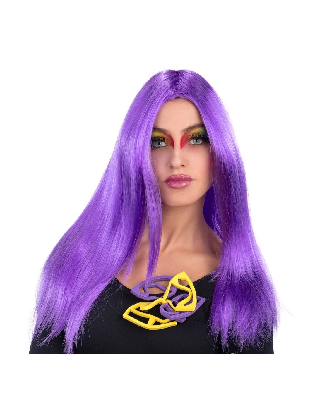 Parrucca lunga liscia color viola perfetta per completare qualsiasi travestimento. I capelli lisci e fluenti raggiungono le spalle, creando un look accattivante e misterioso. Realizzata in fibra sintetica resistente, si indossa facilmente grazie alla calottina elastica che si adatta comodamente alla testa. Ideale per trasformare completamente il proprio aspetto durante eventi in maschera, permettendo di creare personaggi fantastici e originali.