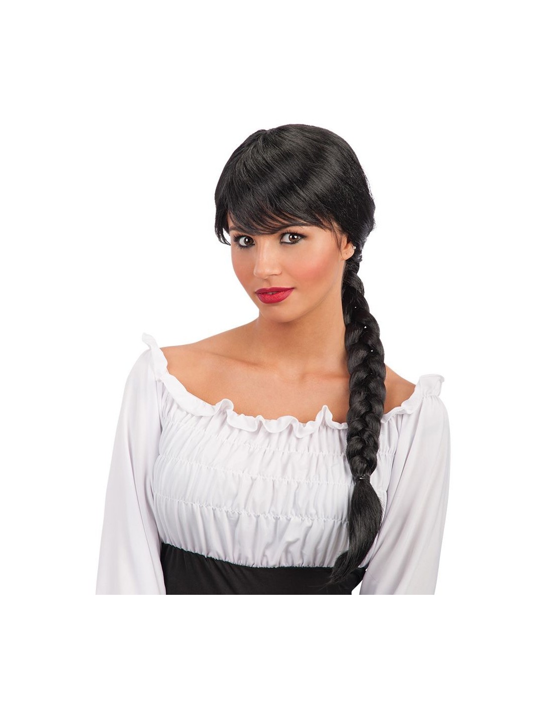 Questa parrucca nera con lunga treccia laterale è l'accessorio perfetto per completare numerosi travestimenti femminili. Caratterizzata da capelli neri lucenti raccolti in una voluminosa treccia che scende su un lato, dona un aspetto affascinante e misterioso. La frangia frontale incornicia dolcemente il viso, mentre la treccia intrecciata aggiunge movimento e carattere al look. Realizzata in fibra sintetica resistente, si adatta comodamente grazie alla calotta elastica interna che garantisce una vestibilità sicura durante tutto l'utilizzo.