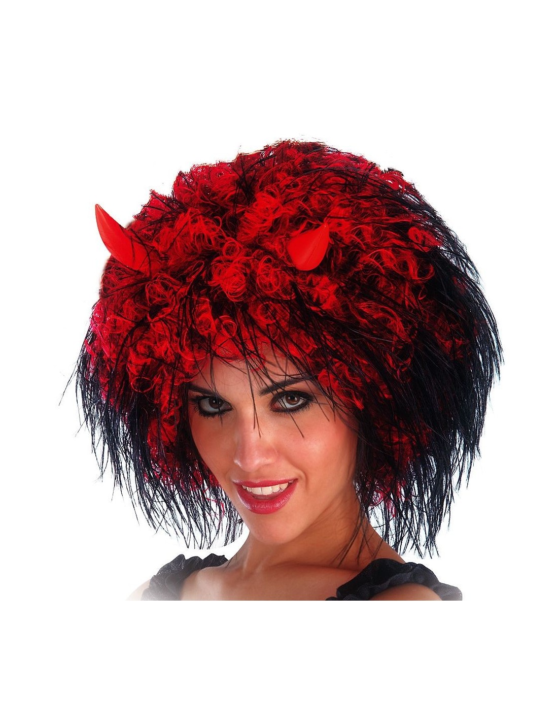 Questa parrucca Red Devil con corna è perfetta per trasformarti in una creatura infernale irresistibile. Caratterizzata da capelli rossi e neri dall'effetto selvaggio e ribelle, è completata da piccole corna rosse che emergono dalla chioma per un look davvero diabolico. La parrucca presenta una texture mista con ciocche rosse predominanti e dettagli neri che creano un contrasto scenografico. Il taglio scalato e scompigliato dona movimento e carattere, mentre le corna integrate rendono il travestimento immediatamente riconoscibile.