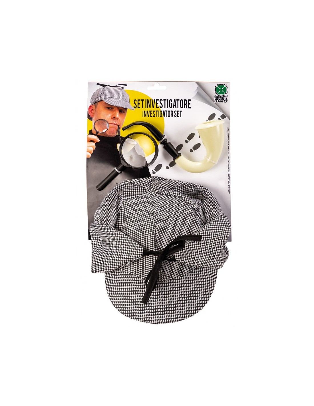 Set investigatore (cappello,lente,pipa) su cartoncino