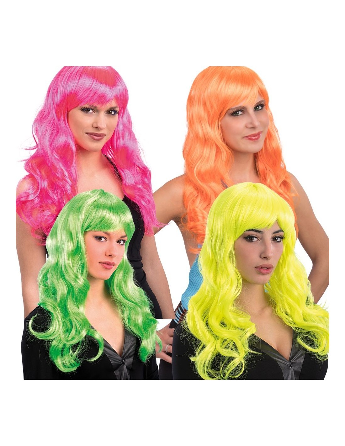 Parrucca lunga mossa fluo frangia col.ass.