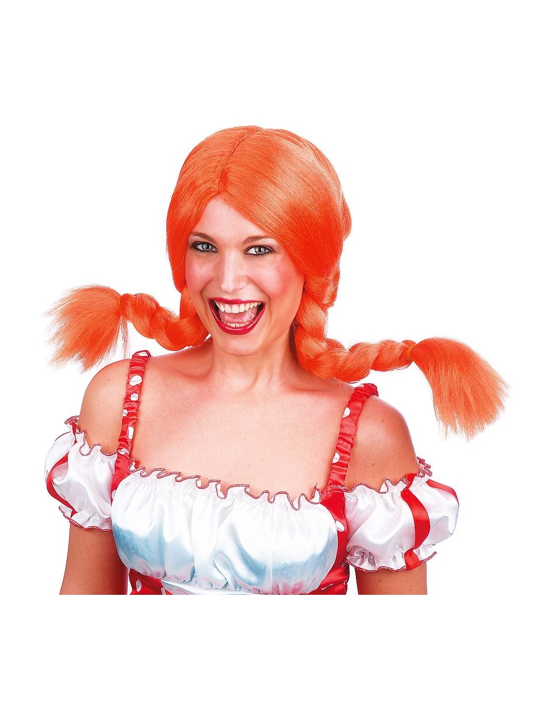 Trasformati nella birichina più famosa della letteratura con questa parrucca Pippi Calzelunghe dal caratteristico colore rosso carota. La parrucca presenta le iconiche trecce che si alzano verso l'alto, proprio come il celebre personaggio creato da Astrid Lindgren. Realizzata in fibra sintetica, è dotata di elastico interno per una vestibilità comoda. Perfetta per completare il costume da Pippi Calzelunghe e dare vita al personaggio più amato dai bambini.