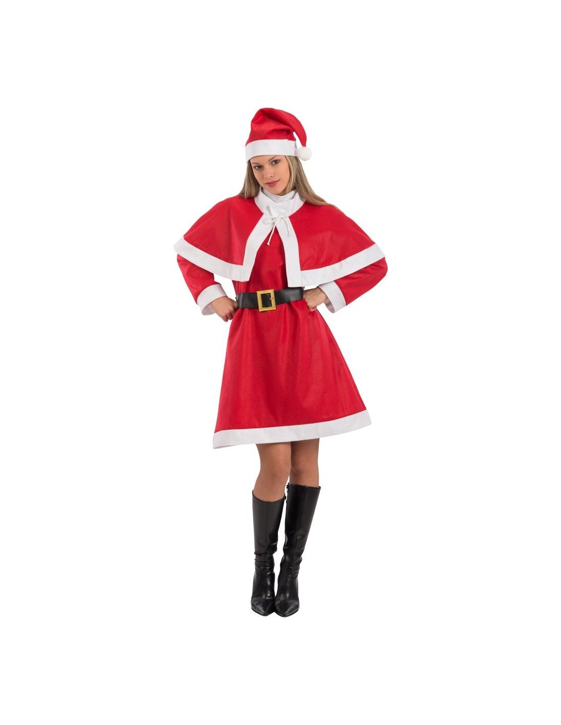 Trasformati nella versione femminile di Babbo Natale con questo delizioso costume natalizio. Il set include un abito rosso con bordature bianche, mantello coordinato, cappello da Santa e cintura nera con fibbia dorata. Realizzato in tessuto morbido e confortevole, garantisce libertà di movimento durante le feste. La vestibilità è pensata per taglie M, L e XL, adattandosi perfettamente a diverse corporature femminili.
