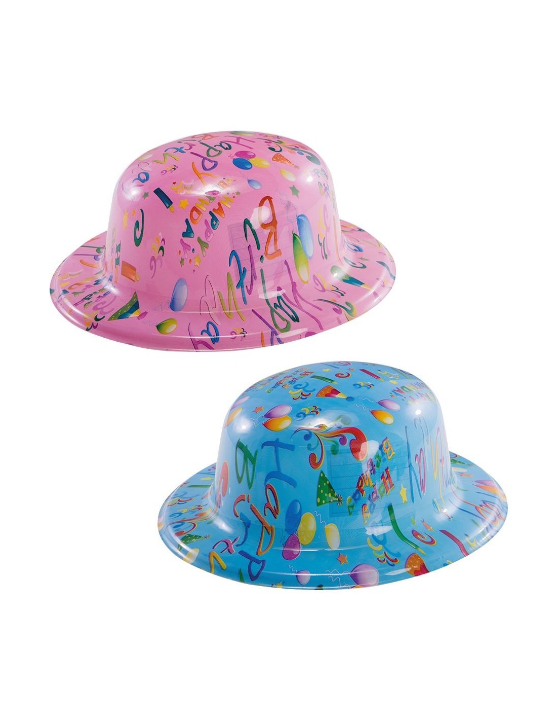 Bombetta in plastica serigrafata HAPPY BIRTHDAY col. ass.