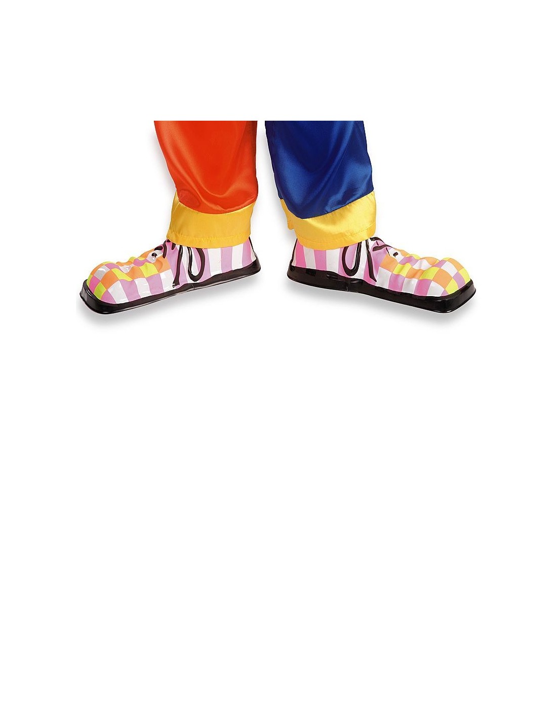 I copriscarpe clown per bambino sono l'accessorio ideale per completare qualsiasi travestimento da pagliaccio. Realizzati con fantasie multicolori a quadretti e dettagli divertenti, questi copriscarpe si indossano facilmente sopra le scarpe normali trasformando immediatamente i piedini del piccolo. Il design allegro e colorato con lacci decorativi garantisce un look autentico e giocoso. Le scarpe non sono incluse nel set.