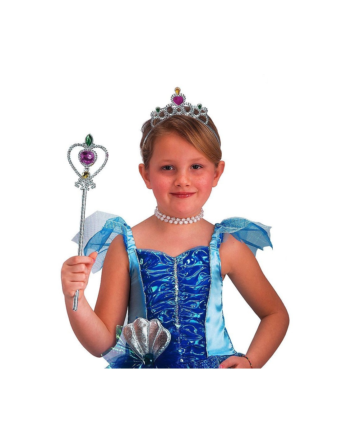 Trasformati in una vera principessa da fiaba con questo elegante set principessa argento completo di corona decorativa e scettro magico. Il set include una corona con dettagli argentati e gemme colorate, perfetta da indossare, e uno scettro coordinato per completare il look regale. Gli accessori presentano finiture argentate che brillano sotto la luce, creando un effetto principesco perfetto per ogni occasione speciale.