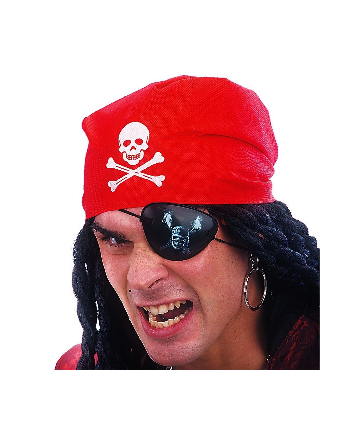 Questo set pirata completo include tutto il necessario per trasformarti in un autentico corsaro dei mari: bandana rossa con teschio e ossa incrociate, benda nera per l'occhio e orecchino dorato. Il kit comprende i tre accessori fondamentali per creare istantaneamente il look del pirata più temuto dei Caraibi. La bandana in tessuto morbido si adatta comodamente alla testa, mentre la benda elastica garantisce una vestibilità perfetta. Un set essenziale per completare qualsiasi travestimento da bucaniere.