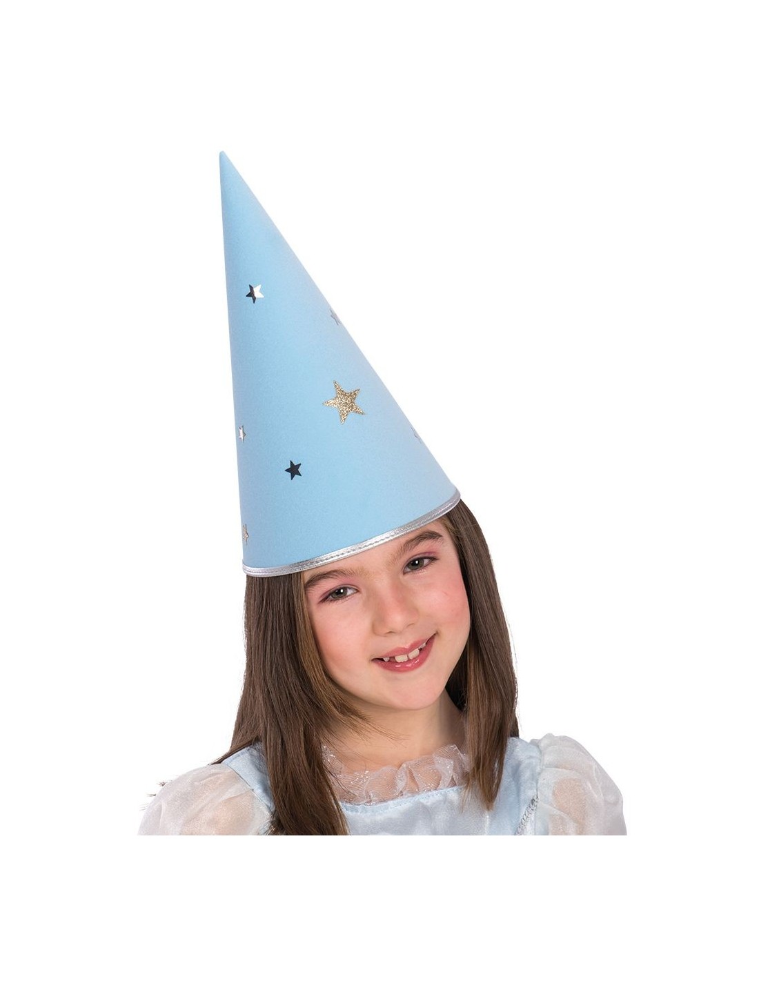 Il cappello da fatina azzurro per bambina è l'accessorio perfetto per trasformarsi in una magica fatina dei boschi. Realizzato in monofloccato, presenta un'elegante colorazione azzurra decorata con stelline dorate e argentate che catturano la luce. Il design conico classico dona un aspetto incantevole e fiabesco, mentre il materiale morbido garantisce comfort durante l'utilizzo. Il set comprende il solo cappello da fatina, permettendo di abbinarlo a qualsiasi costume o vestito per creare look personalizzati.