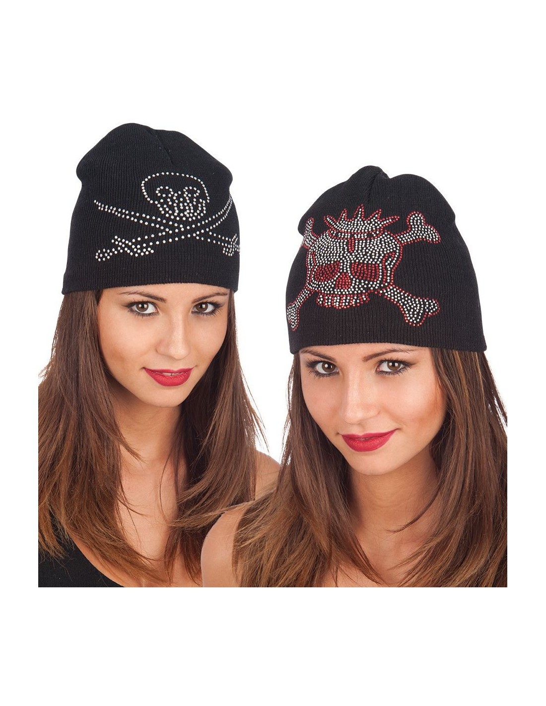 Berretto di lana nero decorato con teschio in strass brillanti, perfetto per chi vuole aggiungere un tocco rock e ribelle al proprio look. Il set comprende un berretto realizzato in morbida lana che garantisce calore e comfort. Il design presenta un teschio decorato con strass scintillanti che catturano la luce, disponibile sia in versione bianca che rossa con dettagli rosa. Ideale per completare costumi a tema horror, look gothic o semplicemente per chi ama lo stile alternativo.