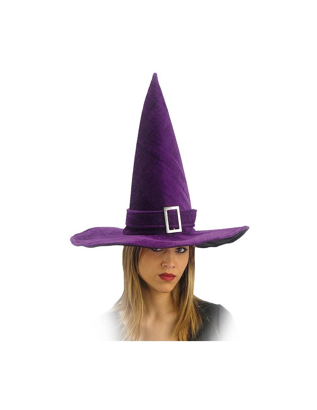 Cappello strega in velluto viola fibbia h. cm. 40 ca.
