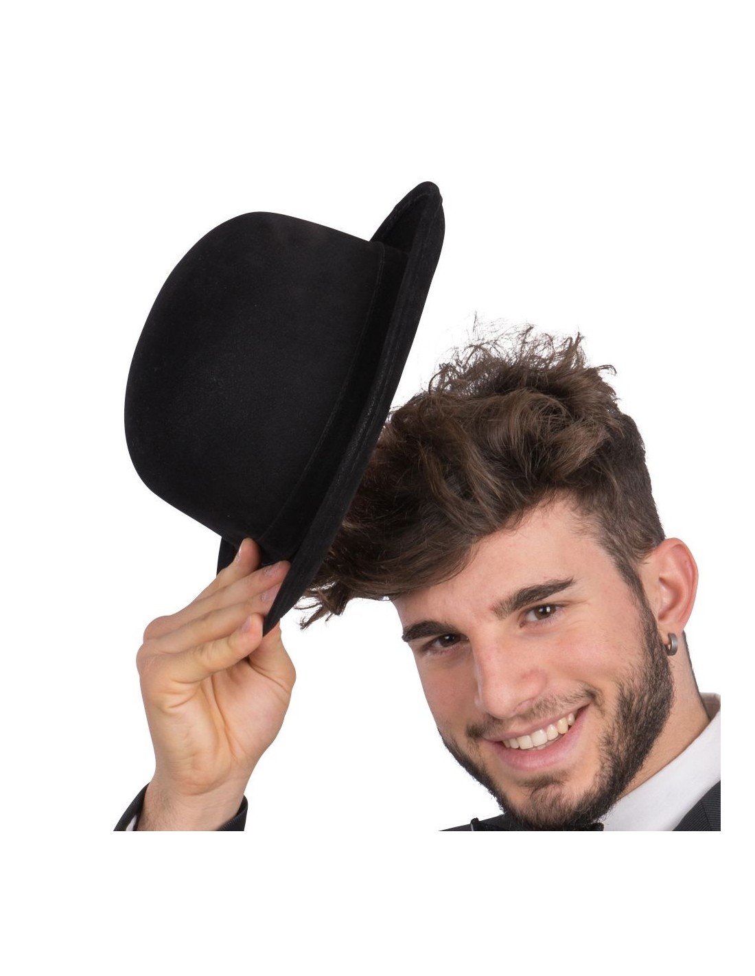 Questa elegante bombetta in tessuto scamosciato nero rappresenta l'accessorio perfetto per completare costumi d'epoca e look teatrali. Il cappello presenta la classica forma bombetta con cupola arrotondata e tesa rigida, realizzato in morbido tessuto scamosciato che dona un aspetto raffinato e autentico. La taglia 60 garantisce una vestibilità comoda per la maggior parte delle teste. Si tratta di un accessorio versatile che aggiunge un tocco di classe a qualsiasi travestimento, dal gentiluomo vittoriano al personaggio circense.