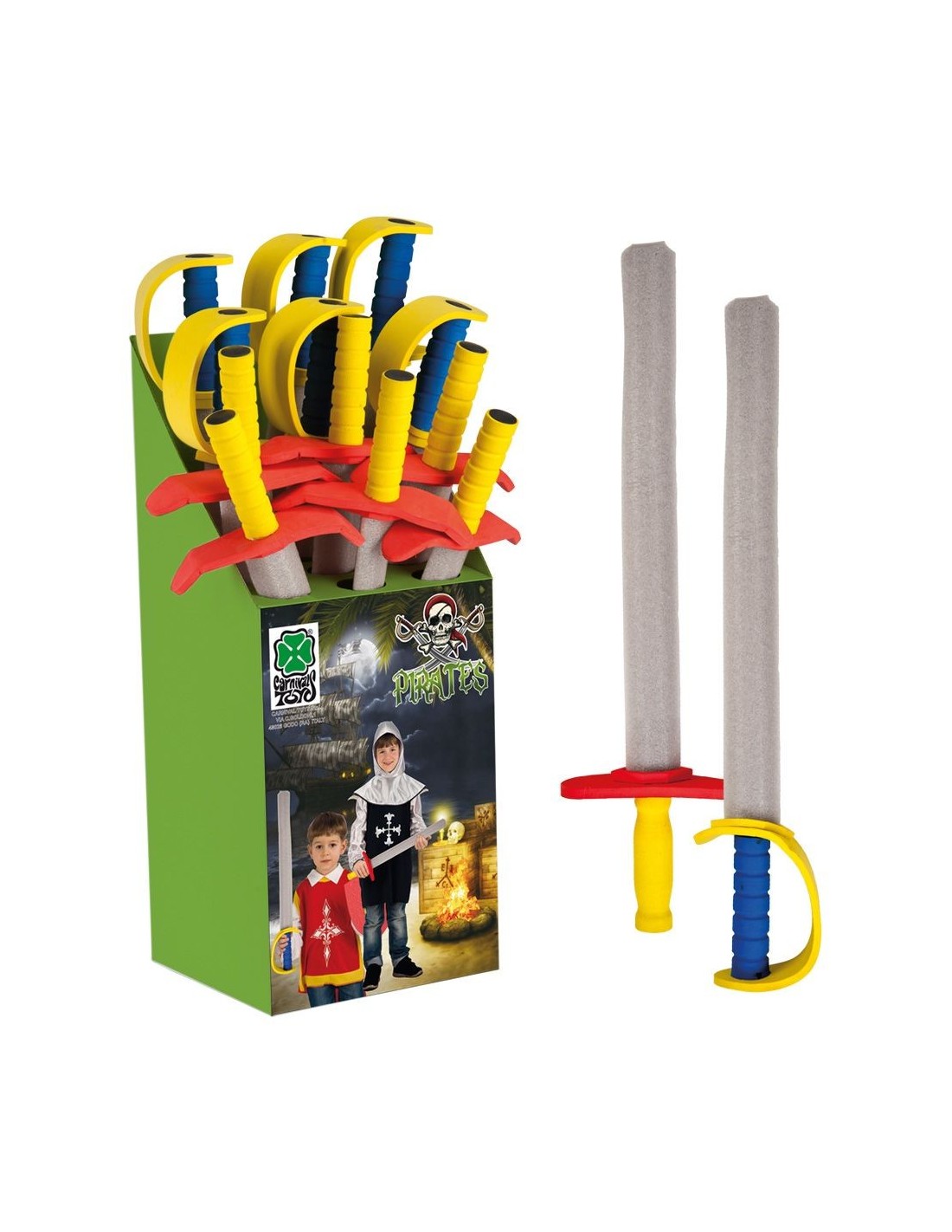Spada realizzata in EVA con lama di circa 64 centimetri, perfetta per completare costumi da cavaliere, gladiatore, pirata o personaggio fantasy. L'impugnatura ergonomica con guardia colorata garantisce una presa salda durante l'utilizzo. Il materiale EVA rende l'accessorio sicuro e maneggevole, ideale per eventi in costume e rappresentazioni teatrali. La lama grigia dall'aspetto realistico dona un tocco autentico al tuo travestimento.