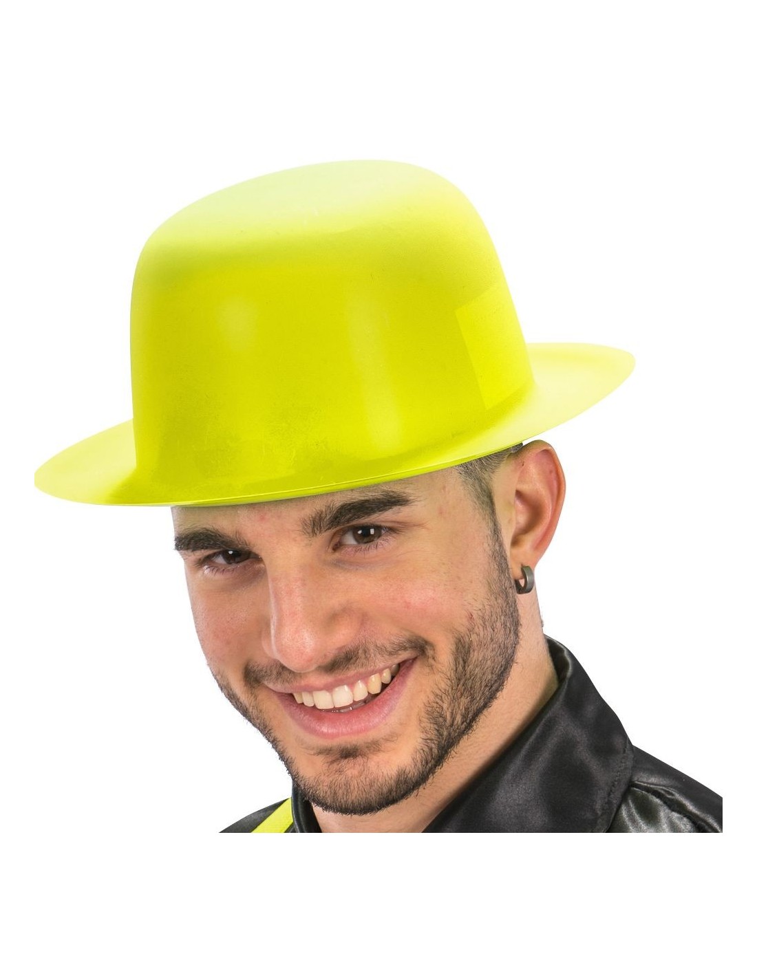 Bombetta giallo fluo in plastica per feste e travestimenti