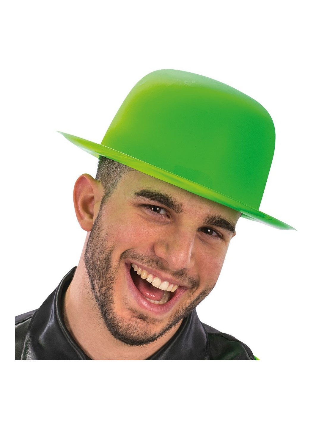 La bombetta in plastica verde fluo è l'accessorio perfetto per completare il tuo travestimento con un tocco di colore vivace e accattivante. Realizzata in resistente plastica dal colore verde fluorescente che si fa notare sotto ogni tipo di illuminazione, questa bombetta presenta la classica forma elegante del cappello inglese tradizionale rivisitata in chiave moderna e divertente. L'accessorio è leggero e comodo da indossare per tutta la durata della festa. Il set comprende esclusivamente la bombetta verde fluo.