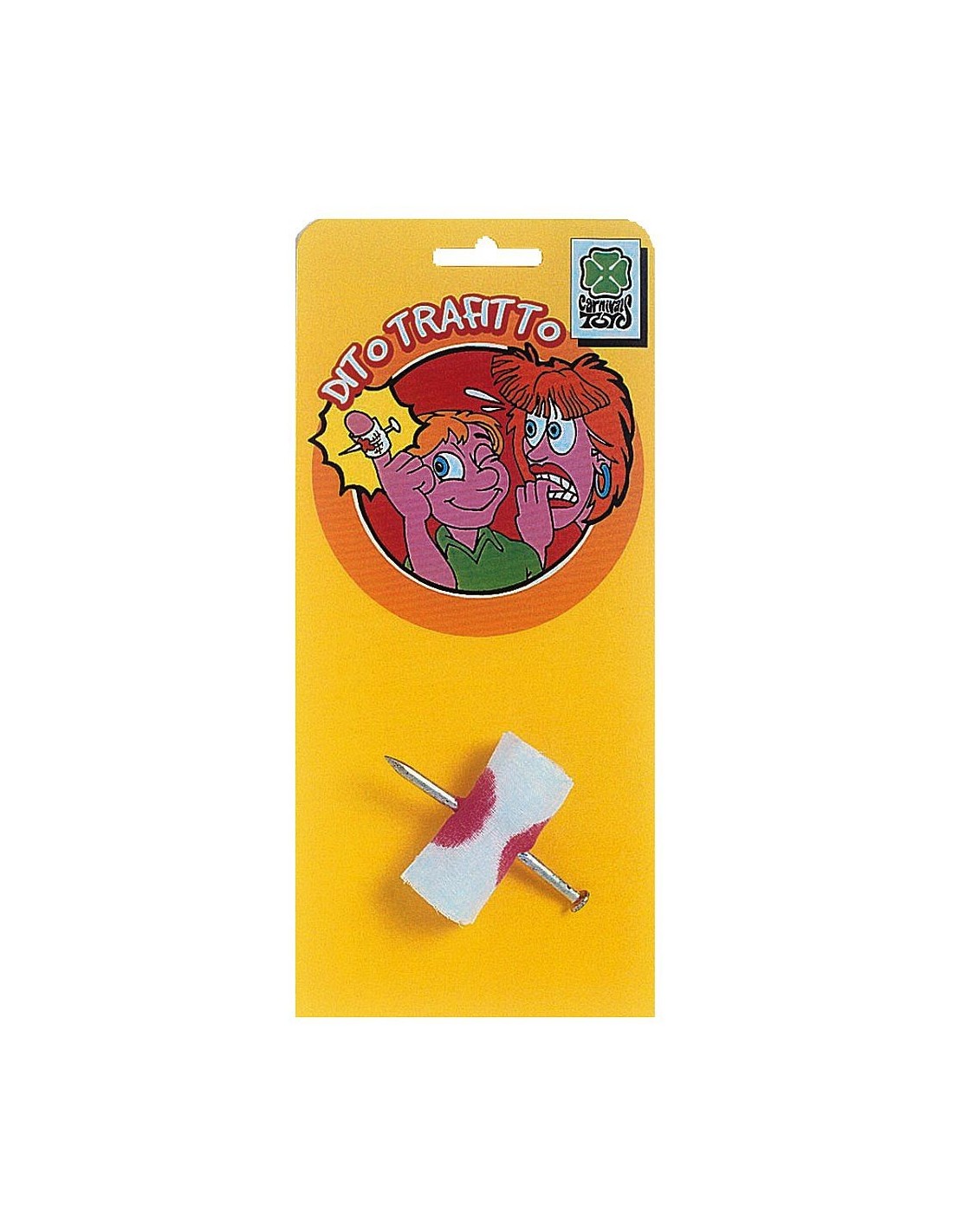 Il dito trafitto con chiodo è un accessorio scherzoso perfetto per stupire e spaventare durante le feste a tema horror. Questo gadget simula un dito attraversato da un chiodo metallico, creando un effetto visivo impressionante ma completamente sicuro. L'accessorio è realizzato in materiale plastico resistente con dettagli realistici che rendono lo scherzo ancora più credibile. Semplice da indossare e rimuovere, si adatta facilmente alle dita per un effetto shock garantito.