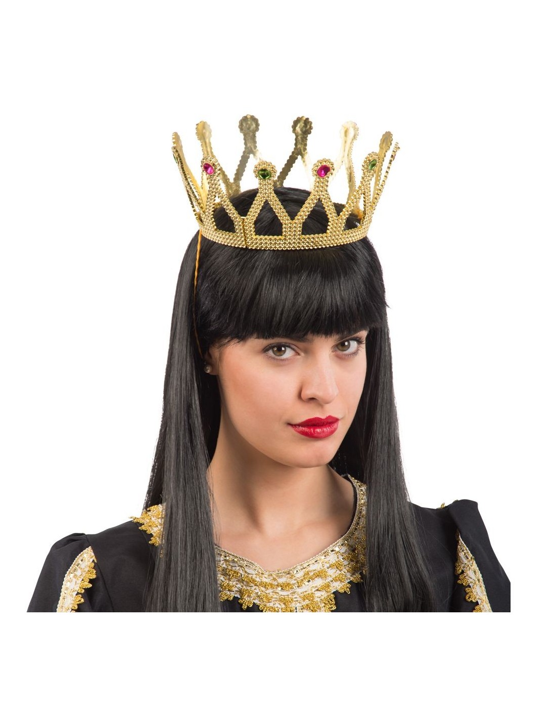 Questa magnifica corona da regina in oro è l'accessorio perfetto per trasformarsi in una sovrana d'altri tempi. Realizzata con materiali resistenti e rifinita con eleganti decorazioni colorate, presenta un design regale con punte distintive e dettagli preziosi. La corona è completamente smontabile, facilitando il trasporto e la conservazione. L'accessorio si adatta comodamente sulla testa ed è perfetto per completare qualsiasi costume da regina, principessa o personaggio nobiliare.