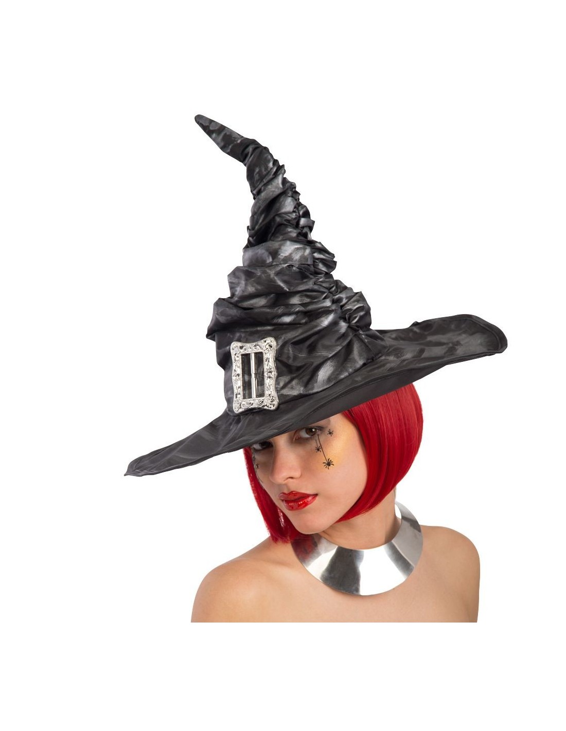 Questo cappello da strega grigio è caratterizzato da un elegante tessuto arricciato che gli conferisce un aspetto autentico e teatrale. Con un'altezza di circa 42 cm, presenta una fibbia decorativa che arricchisce il design classico. Il tessuto grigio antracite è lavorato con pieghe e arricciate che creano volume e movimento, mentre la punta allungata e il bordo largo completano la silhouette tradizionale del cappello da strega. Perfetto per chi cerca un accessorio distintivo che si distacca dal classico nero.