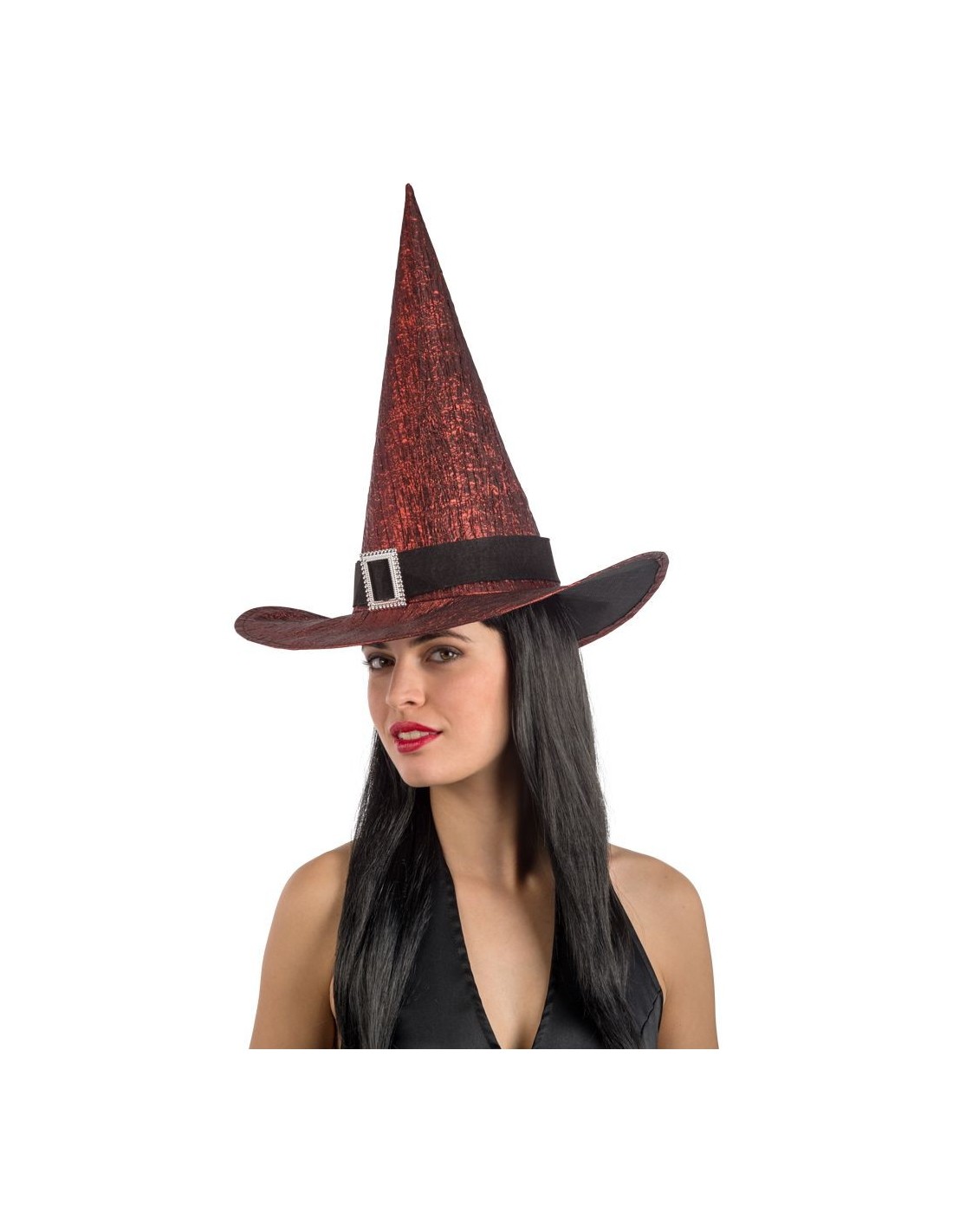 Cappello strega rosso in tessuto metallizzato fibbia h. cm. 40 ca.