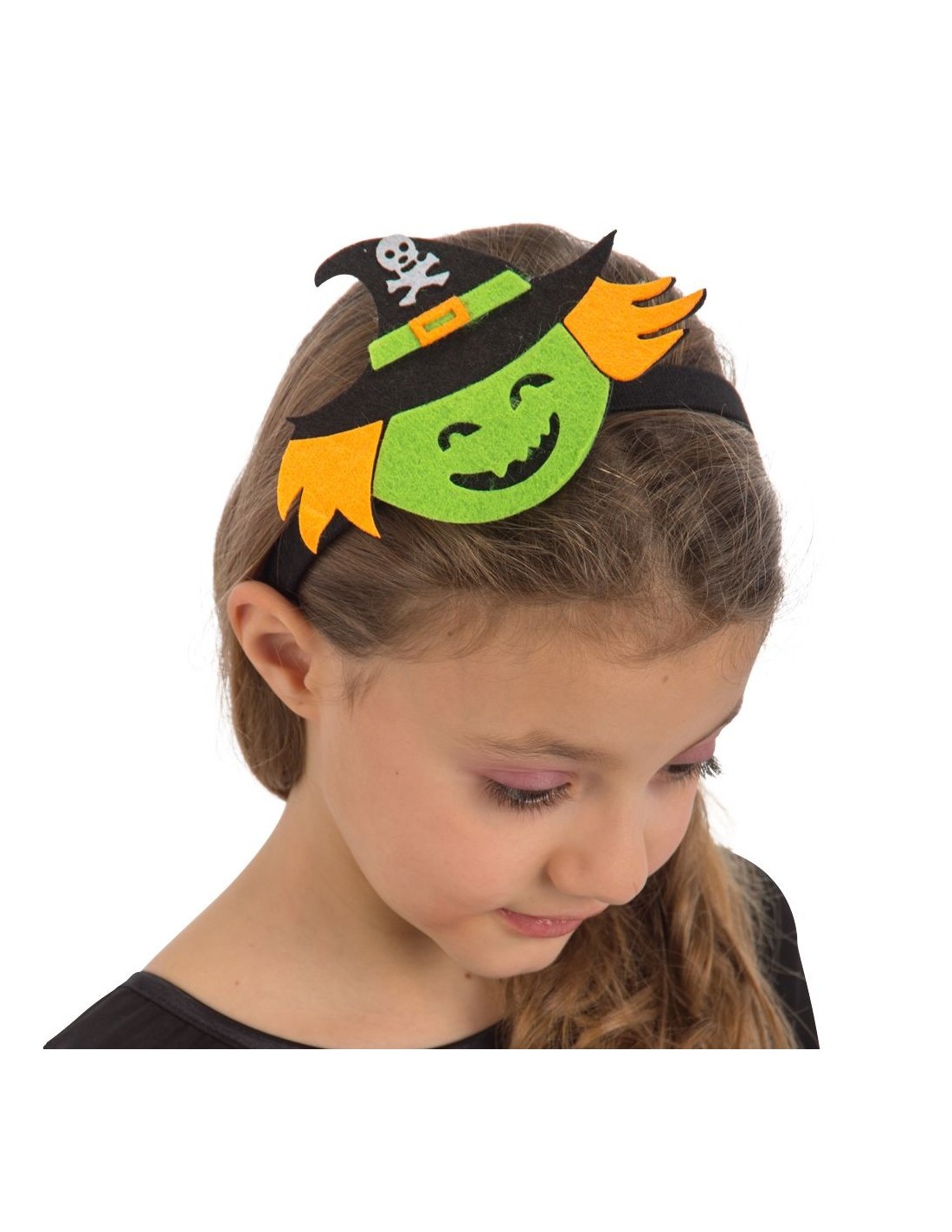 Il cerchietto streghetta in feltro è l'accessorio perfetto per completare il tuo look da strega per Halloween. Realizzato in morbido feltro colorato, presenta una simpatica streghetta verde con cappello nero decorato da teschio, capelli arancioni svolazzanti e un sorriso malizioso. Il cerchietto è comodo da indossare e si adatta facilmente a ogni tipo di capigliatura, rendendolo ideale per trasformazioni rapide e divertenti. L'accessorio è leggero e pratico, perfetto per essere indossato per tutta la durata della festa senza creare fastidi.