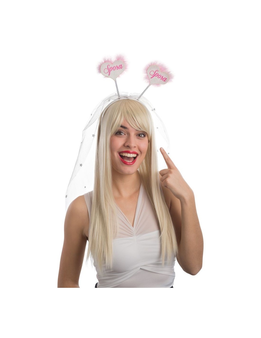 Puoi ammirare dal vivo questo delizioso cerchietto sposa presso il nostro punto vendita in Via Aristide Leonori 26-28 a Roma. Il nostro team esperto saprà consigliarti gli accessori coordinati, dalle parrucche bionde ai rossetti rosa, per rendere il tuo look da sposa ancora più convincente e divertente. Spedizione rapida in 24 ore in tutta Italia.