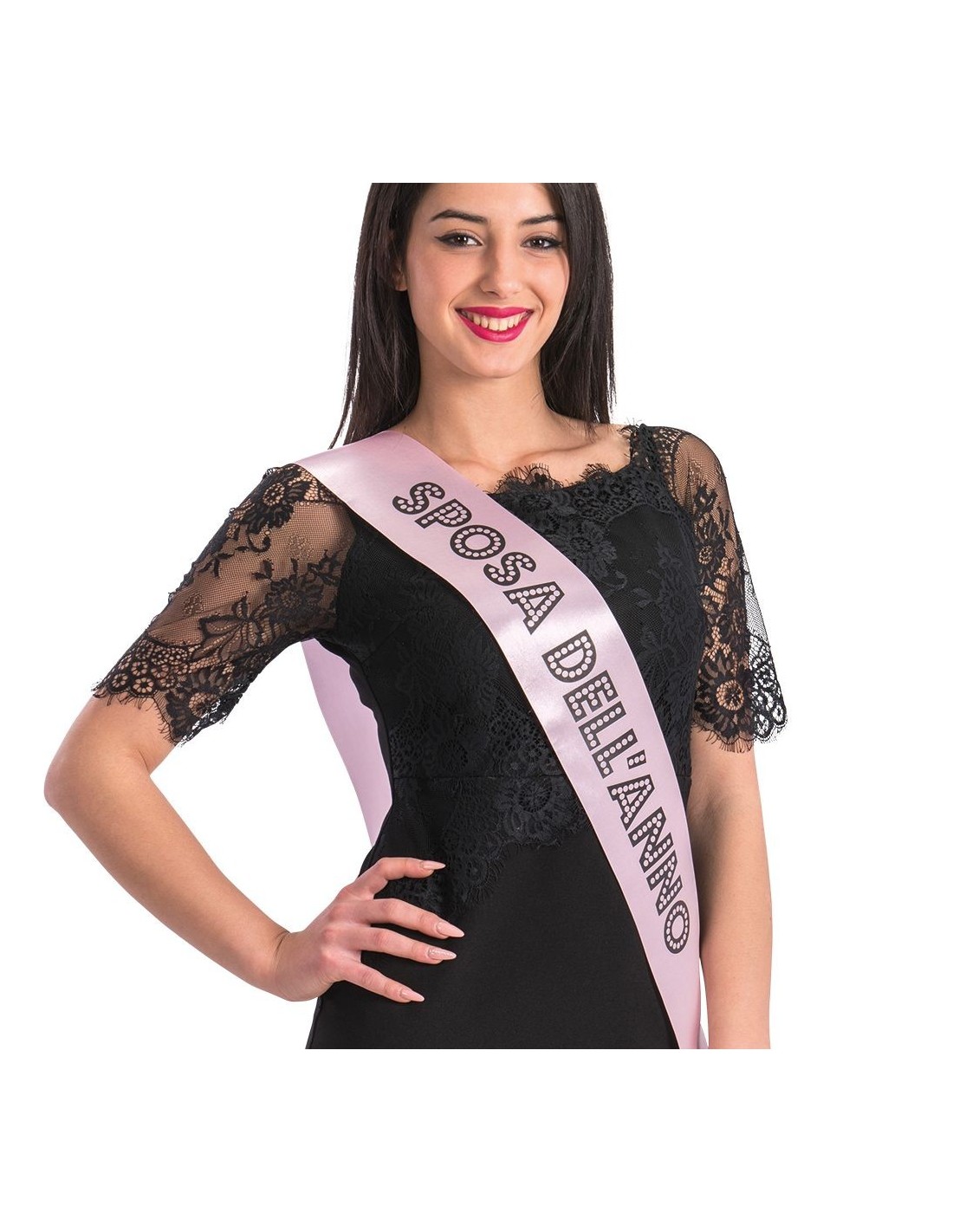 La fascia rosa SPOSA DELL'ANNO è l'accessorio perfetto per celebrare la futura sposa durante l'addio al nubilato e le feste pre-matrimoniali. Realizzata in tessuto satinato rosa con scritta nera ben visibile, si indossa a tracolla per distinguere la protagonista della festa. La fascia ha una lunghezza regolabile che si adatta a diverse corporature, garantendo comfort per tutta la serata. È un accessorio fondamentale per creare l'atmosfera giusta durante i festeggiamenti con le amiche.
