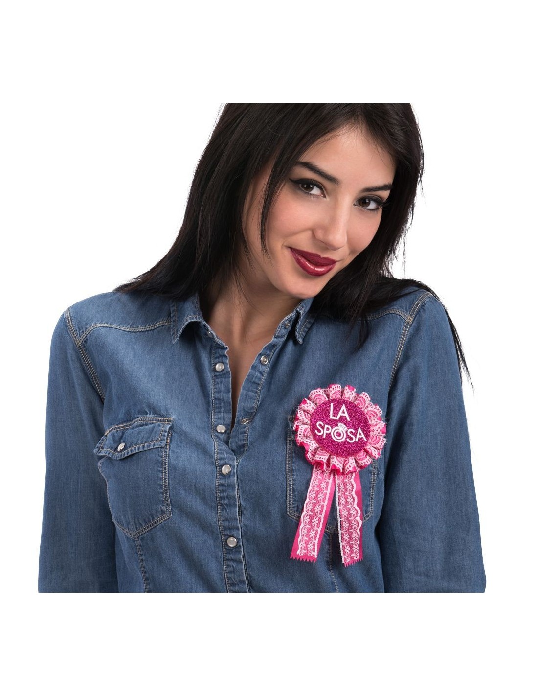 La coccarda rosa LA SPOSA è l'accessorio perfetto per celebrare la futura sposa durante l'addio al nubilato. Questa elegante coccarda presenta la scritta "LA SPOSA" su sfondo rosa con dettagli decorativi e nastri pendenti. Si applica facilmente sui vestiti tramite spilla di sicurezza sul retro. L'accessorio è realizzato in tessuto resistente con finiture curate che garantiscono una perfetta tenuta durante tutta la festa.