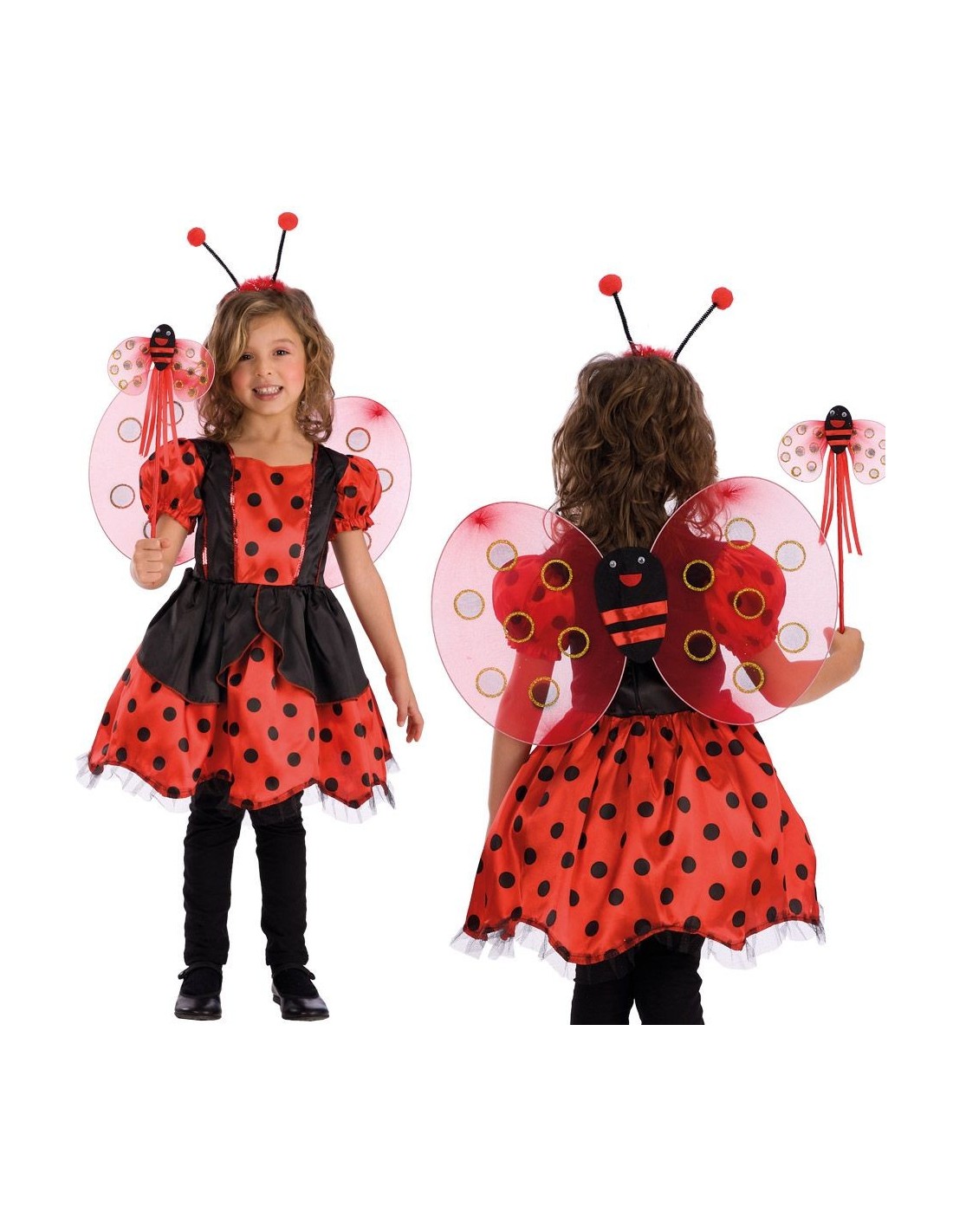 Questo delizioso set coccinella trasforma ogni bambina nella più adorabile coccinella del giardino. Il kit completo comprende ali trasparenti con decorazioni rosse e nere dalle dimensioni di circa 30x50 cm, un pratico cerchietto con antennine e una bacchetta magica coordinata. Gli accessori presentano il classico design a pois nero su sfondo rosso che caratterizza questi simpatici insetti. Il set è perfetto per completare qualsiasi costume da coccinella o per aggiungere un tocco speciale a outfit già esistenti.