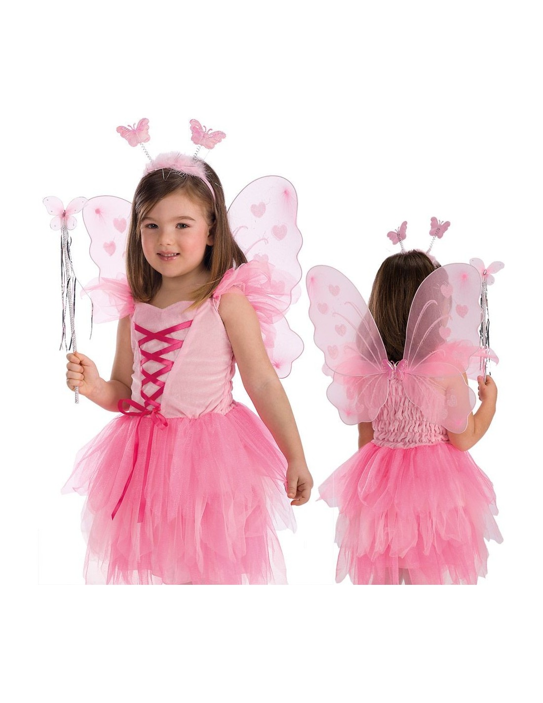 Set farfalla rosa (ali h. cm. 40x40 ca., cerchietto e bacchetta)