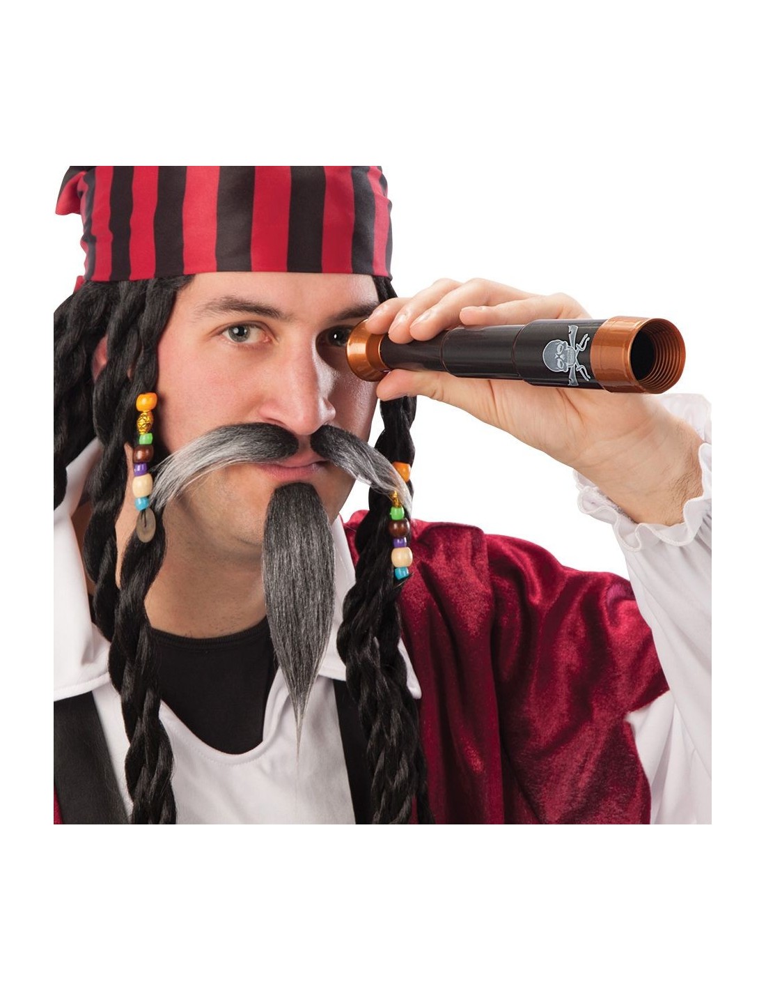 Il cannocchiale pirata è l'accessorio indispensabile per completare il tuo costume da bucaniere dei mari. Questo telescopio dal design autentico riproduce fedelmente gli strumenti di navigazione utilizzati dai pirati del passato. Realizzato con finiture che richiamano il metallo anticato e il legno, presenta dettagli decorativi che lo rendono un elemento scenico di grande impatto. Perfetto per aggiungere realismo al tuo travestimento da pirata, corsaro o capitano di vascello.