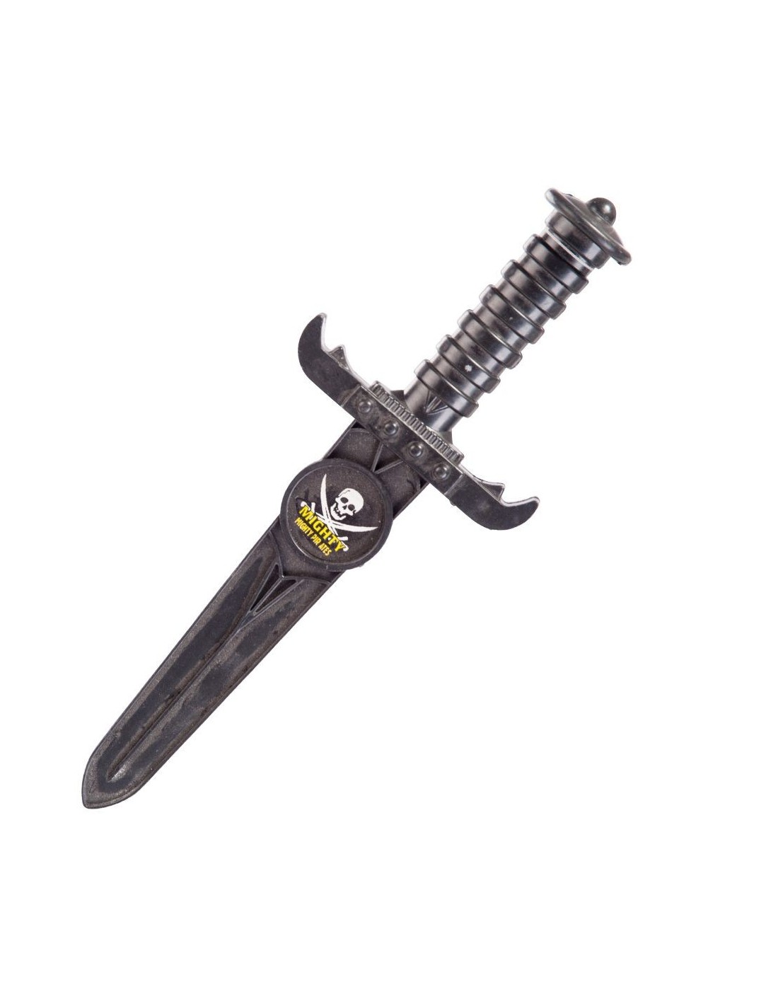 Questo pugnale da pirata in plastica nera presenta un design caratteristico con impugnatura decorativa e simbolo del teschio dorato sul lato della lama. La lunghezza di circa 22 cm lo rende perfetto come accessorio per completare costumi da pirata, corsaro o personaggi avventurosi. L'impugnatura ergonomica garantisce una presa sicura durante le feste e gli eventi a tema. Il pugnale è realizzato interamente in materiale plastico per garantire sicurezza durante l'utilizzo.