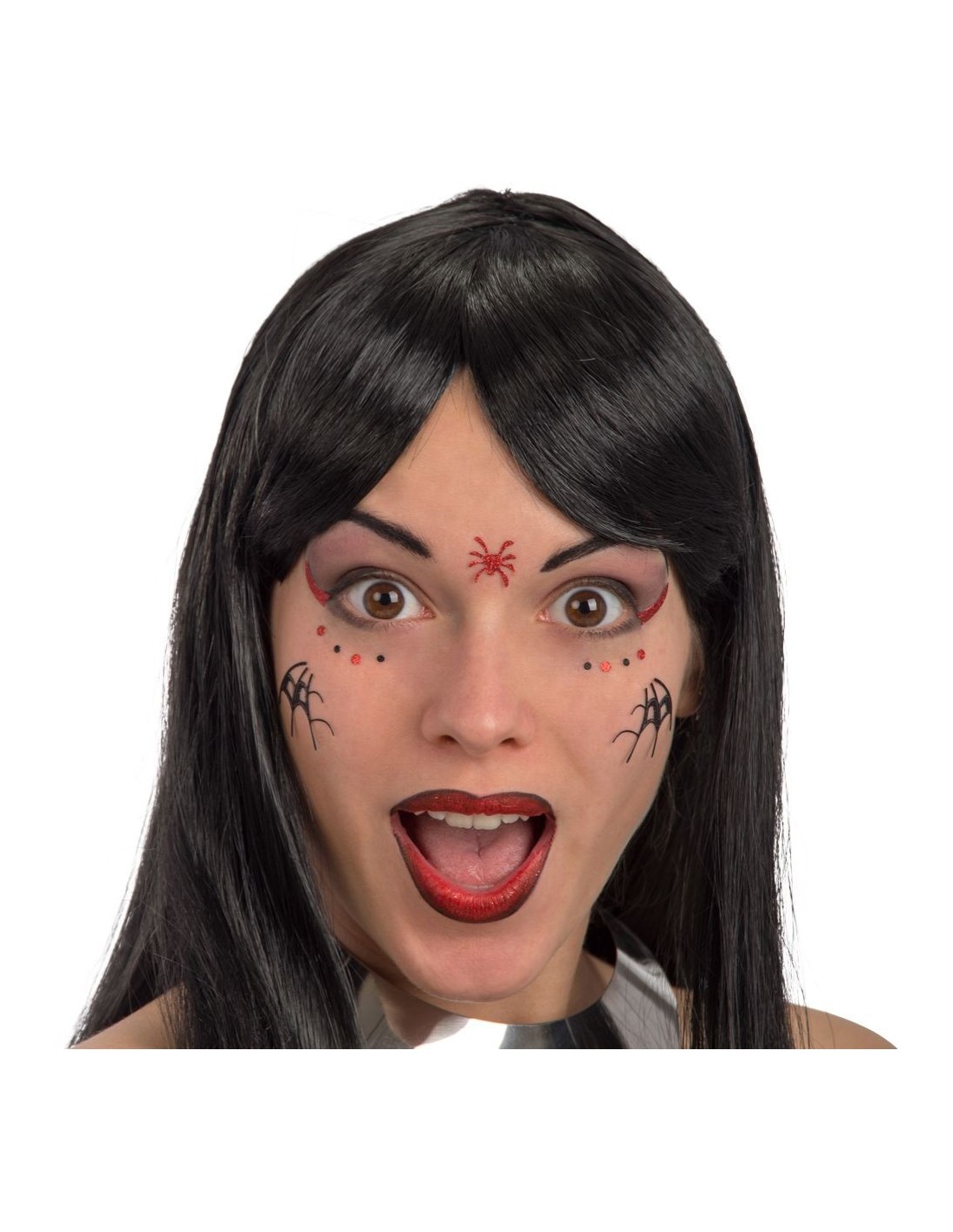 Trasforma il tuo volto con queste affascinanti decorazioni adesive a tema ragnetto rosso, perfette per creare un look Halloween davvero impressionante. La cartella include diversi adesivi decorativi con motivi di ragni rossi e dettagli gotici che si applicano facilmente sul viso. Gli adesivi sono realizzati in materiale sicuro per la pelle e si rimuovono senza lasciare residui. Ideali per chi vuole un trucco elaborato senza dover dipingere il viso, questi adesivi garantiscono un effetto scenico immediato.