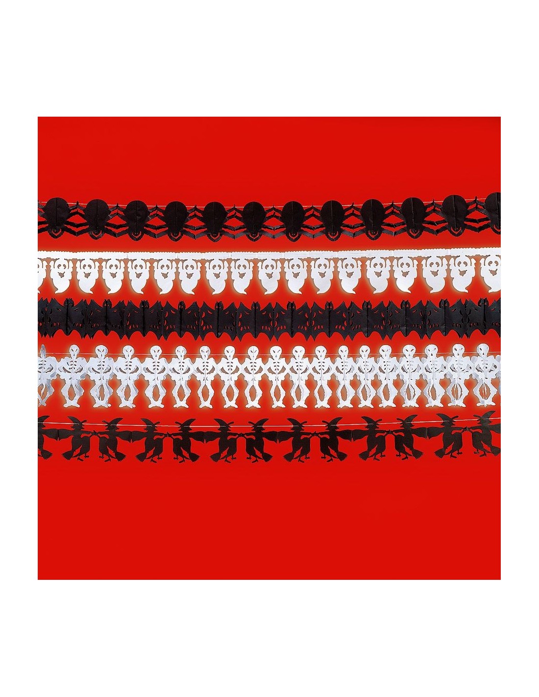Il festone Halloween in carta da 300 cm circa è la decorazione perfetta per trasformare qualsiasi ambiente in un luogo da brivido. Questo lungo striscione decorativo presenta motivi horror tipici di Halloween con stampe spaventose e colori tradizionali della festa più terrificante dell'anno. Realizzato in carta resistente, si sviluppa per ben 3 metri di lunghezza, permettendo di decorare ampie superfici come pareti, soffitti, finestre o spazi esterni. Facile da appendere e posizionare, crea immediatamente l'atmosfera giusta per la notte delle streghe.