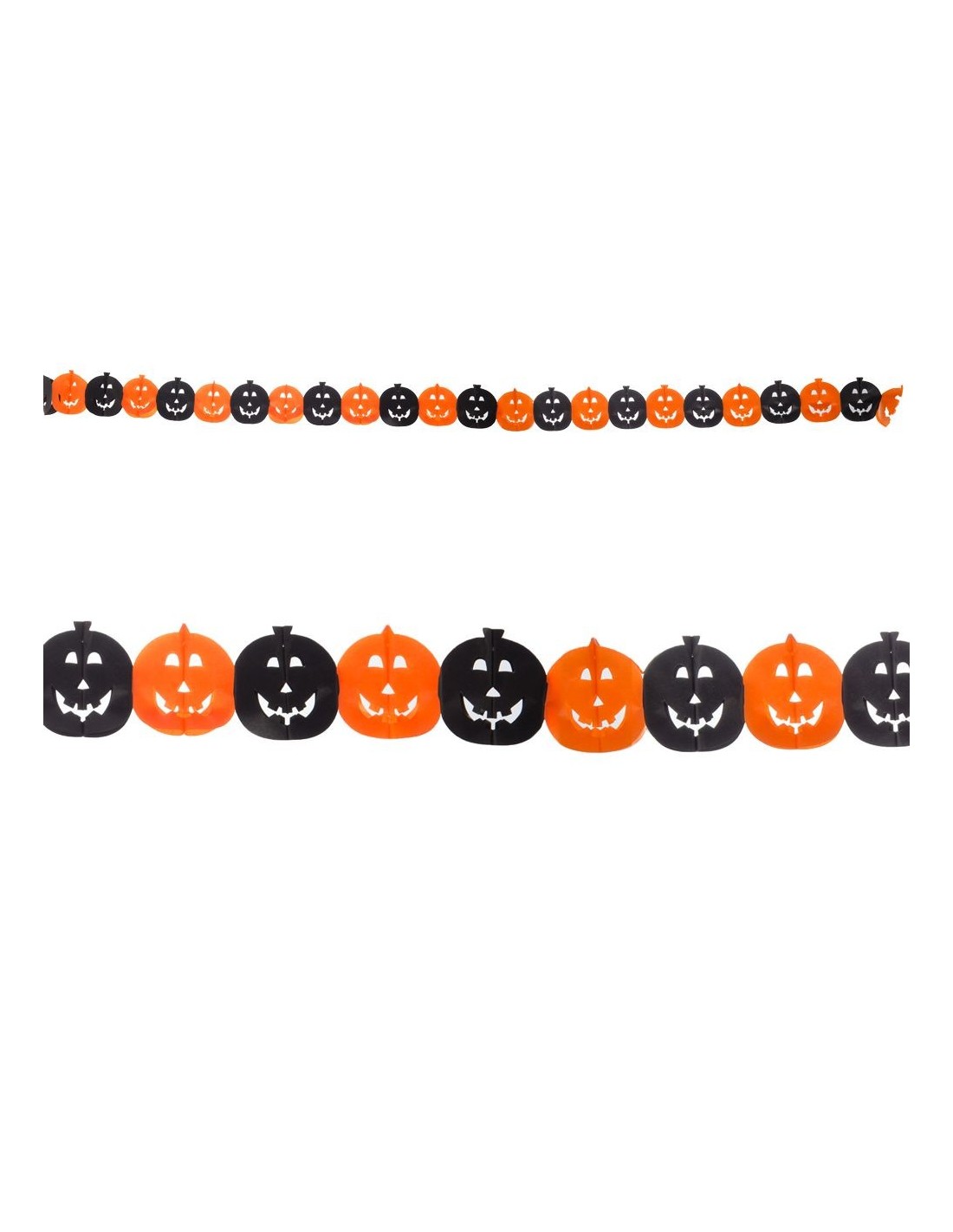 Il festone con zucche di Halloween è la decorazione perfetta per creare un'atmosfera spettrale e festosa. Questo festone presenta zucche dal diametro di 15 cm alternate in colori arancione e nero, per una lunghezza totale di circa 4 metri. Le zucche sono decorate con espressioni spaventose e divertenti tipiche di Jack-o'-lantern, realizzate in materiale resistente e leggero. Il festone è pronto all'uso e si appende facilmente grazie al cordino integrato che collega tutte le zucche.