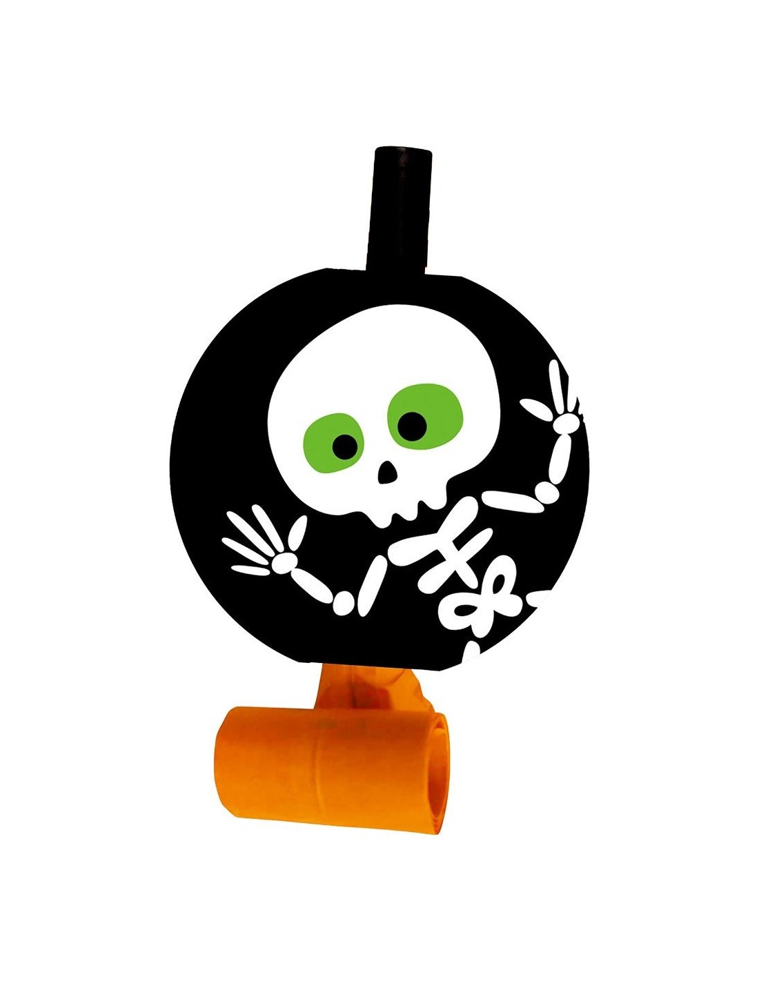 Questo divertente set comprende 6 lingue suocera a tema Halloween, caratterizzate da un design macabro con teschio bianco dagli occhi verdi su sfondo nero. Ogni lingua suocera è decorata con elementi horror come scheletri danzanti e ossa, perfette per creare atmosfere spaventose durante le feste. Il set include 6 pezzi identici, realizzati in materiale resistente con meccanismo a soffio tradizionale che produce il classico suono stridente.