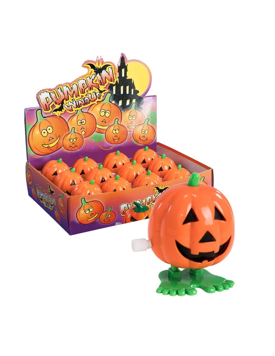 Divertente zucchetta di Halloween a molla che salta e si muove autonomamente! Questo simpatico giocattolo presenta il classico volto di Jack-o'-lantern con espressione sorridente scavato sulla superficie arancione. La zucchetta è dotata di un meccanismo a molla che le permette di saltellare in modo imprevedibile e divertente. Il meccanismo è posizionato alla base con piedini verdi che danno stabilità durante i movimenti. Perfetta per creare atmosfera durante le feste di Halloween o come gadget divertente per bambini e adulti.