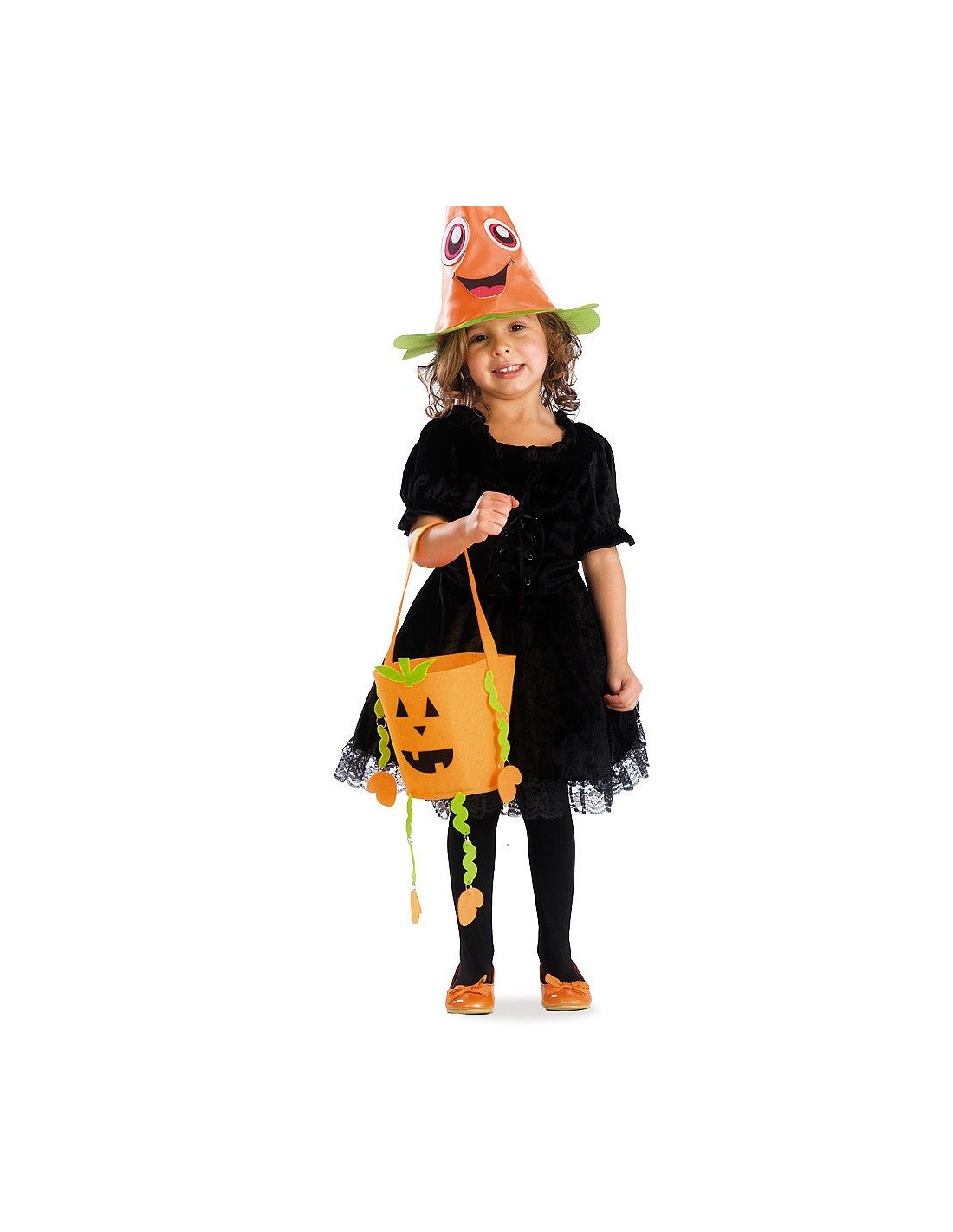 Questa adorabile borsa a forma di zucca in feltro è l'accessorio perfetto per completare il tuo look di Halloween. Realizzata in morbido feltro arancione con dettagli del classico volto della zucca di Halloween, misura circa 30 cm di altezza e ha la capienza ideale per raccogliere dolci e caramelle durante la notte più spaventosa dell'anno. La pratica forma a secchiello con manici resistenti la rende comoda da portare per bambini e adulti.