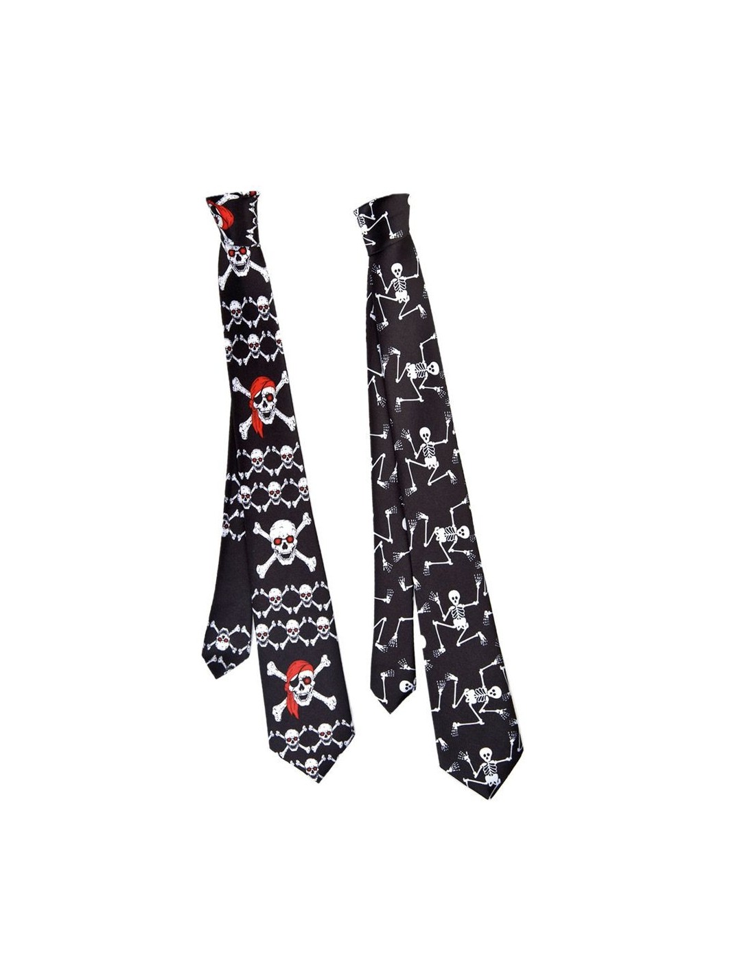 Trasformati nel perfetto gentleman dell'orrore con queste cravatte Halloween dal design macabro. Il set include due cravatte con stampe diverse: una decorata con teschi bianchi e dettagli rossi su sfondo nero, l'altra con pattern di scheletri e ossa in bianco su base scura. Realizzate in tessuto morbido, si adattano perfettamente a qualsiasi colletto per completare il tuo costume da vampiro elegante, scheletro in smoking o personaggio horror raffinato.