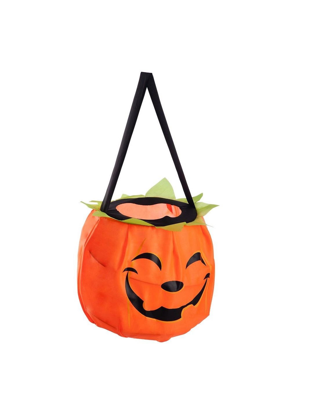 La borsina a forma di zucca è l'accessorio perfetto per completare il look di Halloween. Realizzata in tessuto arancione resistente con simpatico viso sorridente stampato e manico nero per il trasporto, ha un diametro di circa 15 cm che la rende pratica per contenere dolcetti e piccoli oggetti durante la notte più spaventosa dell'anno. La forma tondeggiante e i dettagli realistici la rendono un accessorio indispensabile per bambini e adulti.