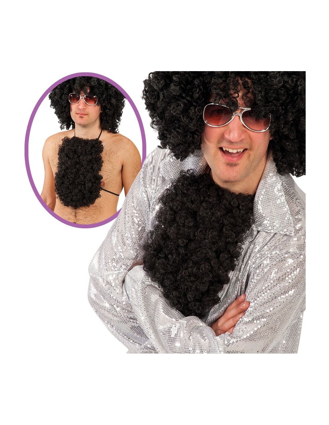 Il petto peloso nero con elastici è l'accessorio perfetto per trasformarsi in un vero latin lover o in un personaggio retrò. Realizzato con pelo sintetico nero e dotato di pratici elastici regolabili, si adatta comodamente al corpo creando un effetto peloso naturale. Questo divertente accessorio è pensato per essere indossato sopra il torso nudo o la maglietta, garantendo un look audace e scenografico.