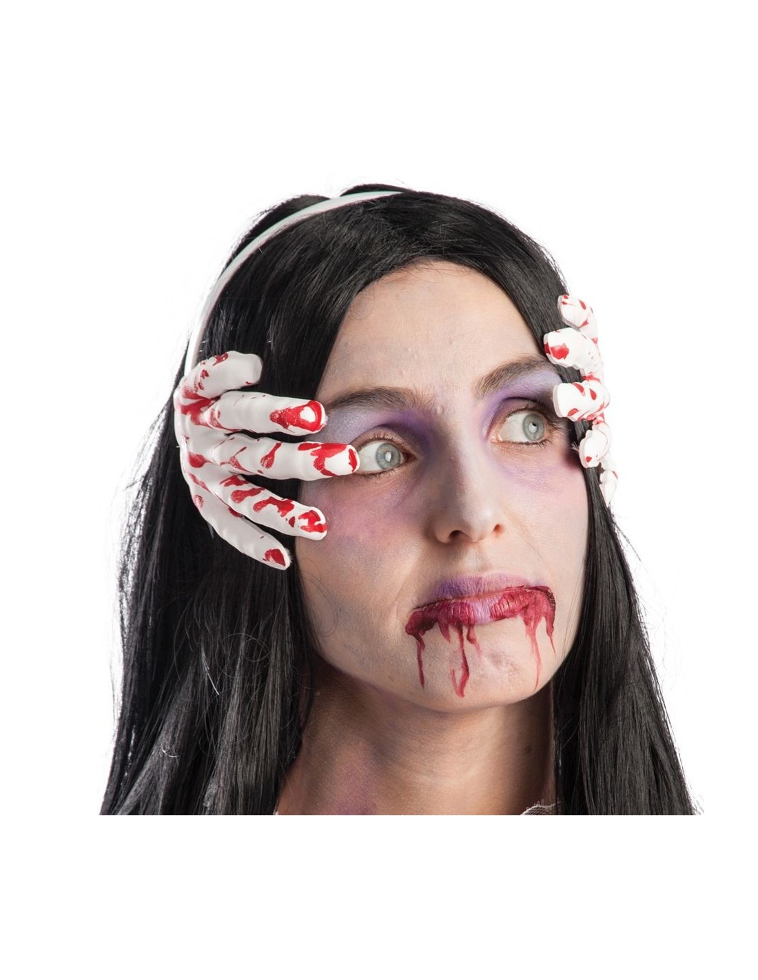 Il cerchietto mani insanguinate è l'accessorio perfetto per chi vuole aggiungere un tocco macabro e inquietante al proprio travestimento. Questo elemento scenico presenta delle mani dall'aspetto cadaverico che sembrano afferrare il volto, con dettagli realistici e macchie di sangue che creano un effetto davvero spaventoso. Il cerchietto è pratico da indossare e si adatta comodamente alla testa, permettendo di trasformare immediatamente qualsiasi look in una visione da incubo. Perfetto da abbinare a trucchi horror e costumi spaventosi per un effetto finale da brivido.