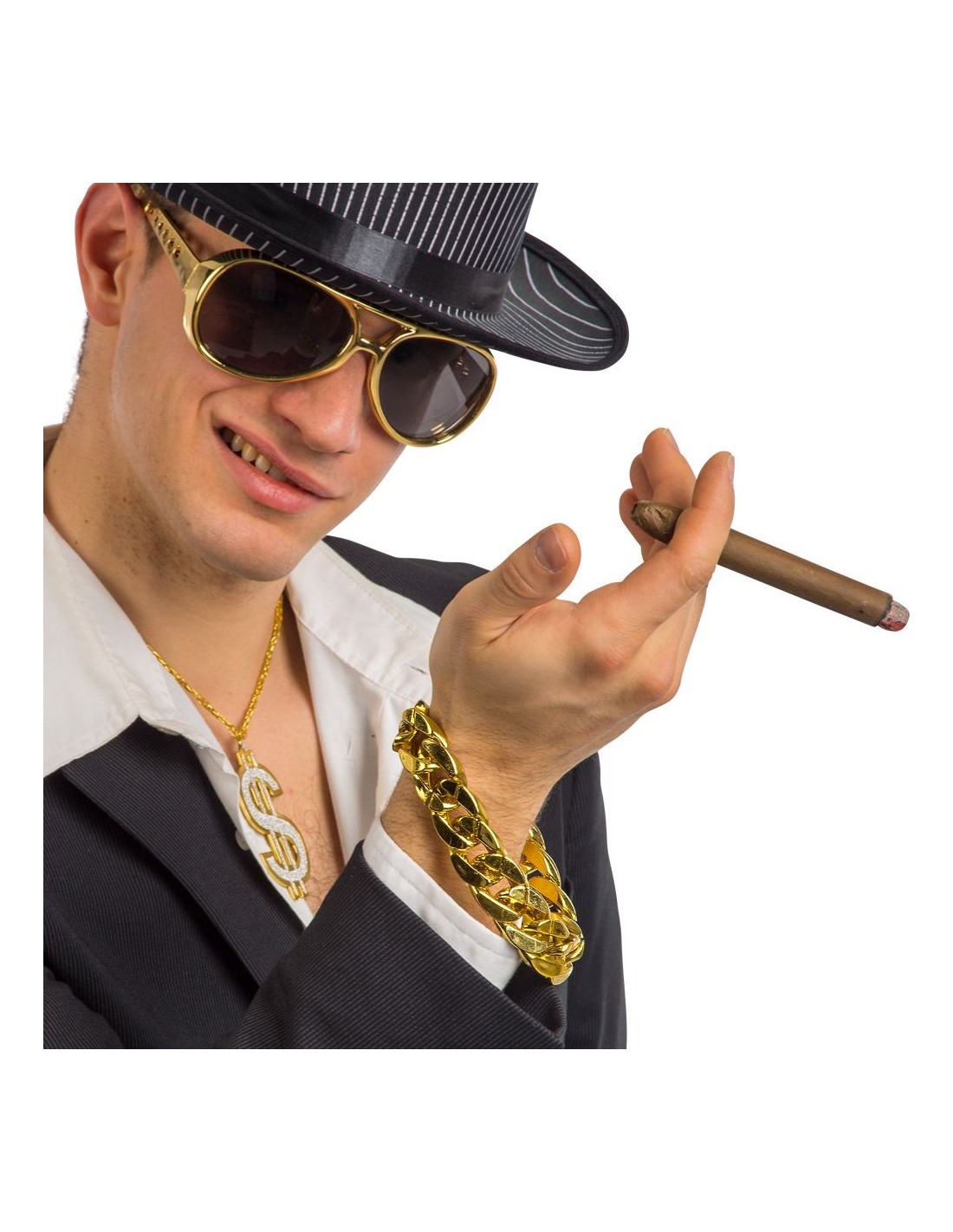 Questo bracciale dorato con catena grossa è l'accessorio perfetto per completare il tuo look da rapper, gangster o personaggio anni '80. Realizzato in plastica effetto oro, presenta maglie spesse e pesanti che richiamano lo stile delle catene hip hop classiche. Il bracciale ha una chiusura sicura e si adatta facilmente al polso. Ideale per trasformarti in un autentico boss o rapper di successo durante le tue feste in costume.