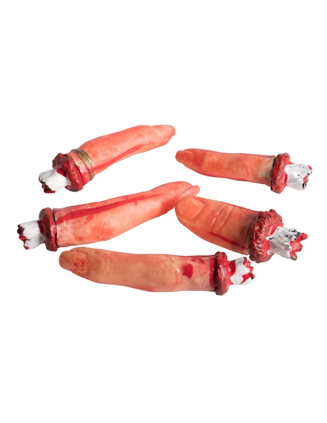 Questo set comprende 5 dita mozzate dall'aspetto estremamente realistico, perfette per creare effetti speciali horror mozzafiato. Ogni dito presenta dettagli anatomici accurati con effetti di sangue e carne esposta che renderanno il vostro travestimento davvero terrificante. Il set include cinque dita di diverse dimensioni per un effetto più credibile e spaventoso. Questi accessori horror sono realizzati in materiale resistente che mantiene l'aspetto realistico durante tutto l'utilizzo.