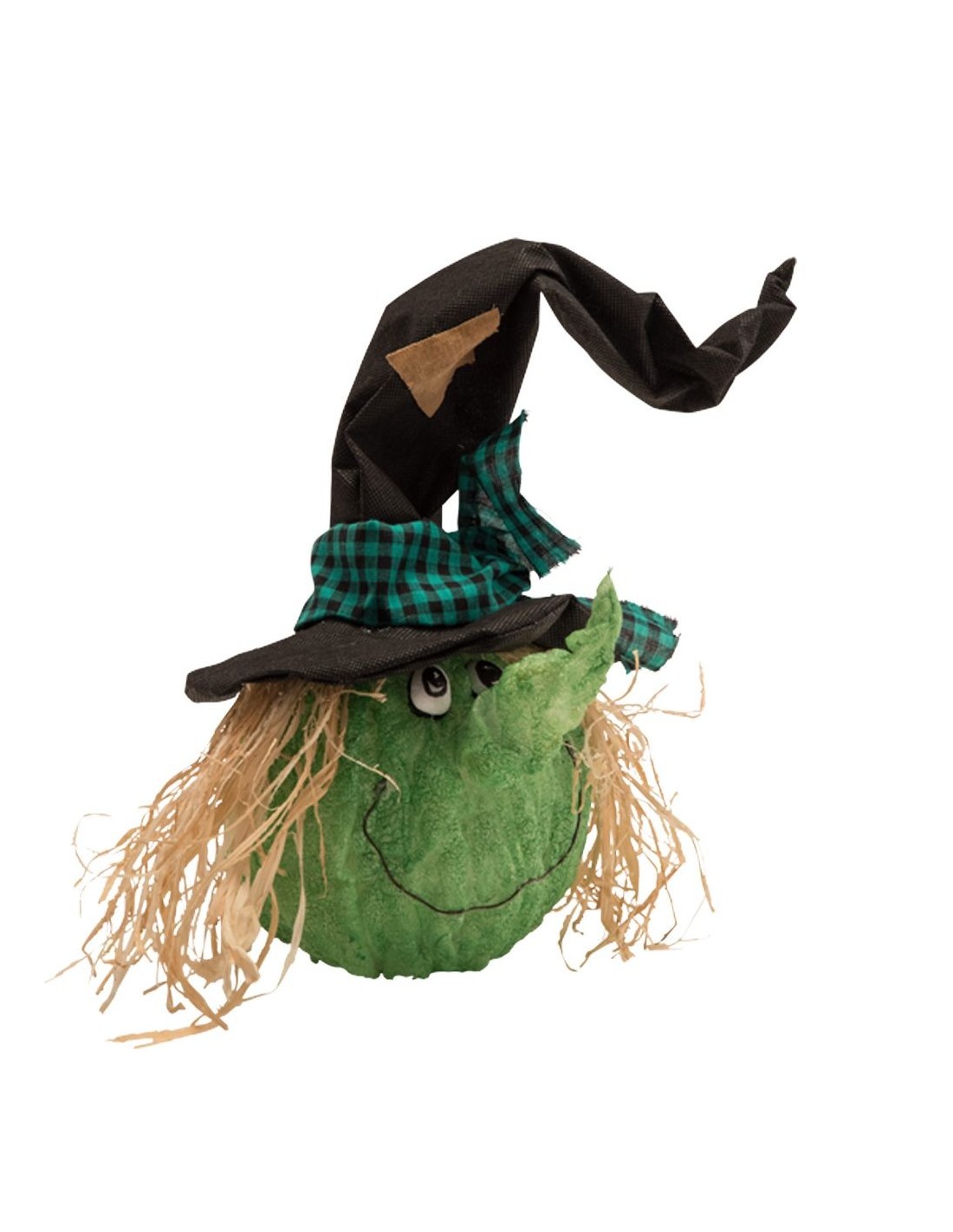 Questa decorativa zucca verde in schiuma di lattice è l'elemento perfetto per creare un'atmosfera magica e misteriosa. Realizzata con cappello da strega nero modellabile decorato con fascia a quadretti verdi e capelli di rafia bionda, è dotata di luci LED integrate che si illuminano creando effetti suggestivi. La struttura in schiuma di lattice garantisce leggerezza e resistenza, mentre l'altezza di circa 50 cm la rende ideale come decorazione di grande impatto. Il set include la zucca verde decorativa, il cappello modellabile e le batterie per l'illuminazione LED.