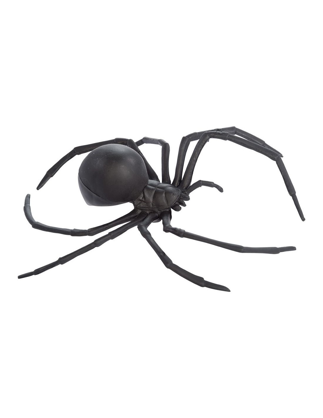 Ragno decorativo in plastica nera dalle dimensioni impressionanti di circa 15 centimetri di diametro. Questo accessorio horror presenta zampe lunghe e articolate che lo rendono particolarmente realistico e spaventoso. Realizzato in resistente plastica nera, è perfetto per creare atmosfere inquietanti e terrorizzare gli ospiti. Le dimensioni generose e il design dettagliato lo rendono un elemento decorativo di grande impatto visivo per qualsiasi allestimento a tema horror.
