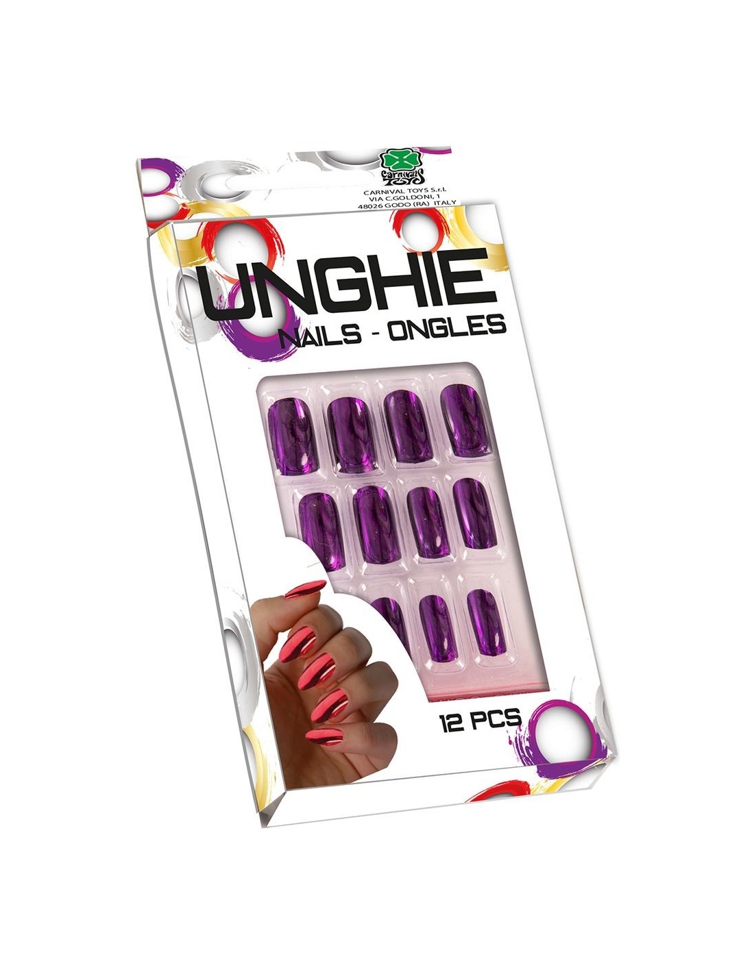 Trasforma le tue mani con questo set di 12 unghie finte dal colore viola metallizzato. Le unghie artificiali presentano una finitura lucida e riflettente che cattura la luce creando un effetto glamour irresistibile. Il set include 12 pezzi di diverse misure per adattarsi perfettamente a tutte le dita. Realizzate in materiale plastico resistente, sono facili da applicare e garantiscono un look impeccabile per ogni occasione speciale.