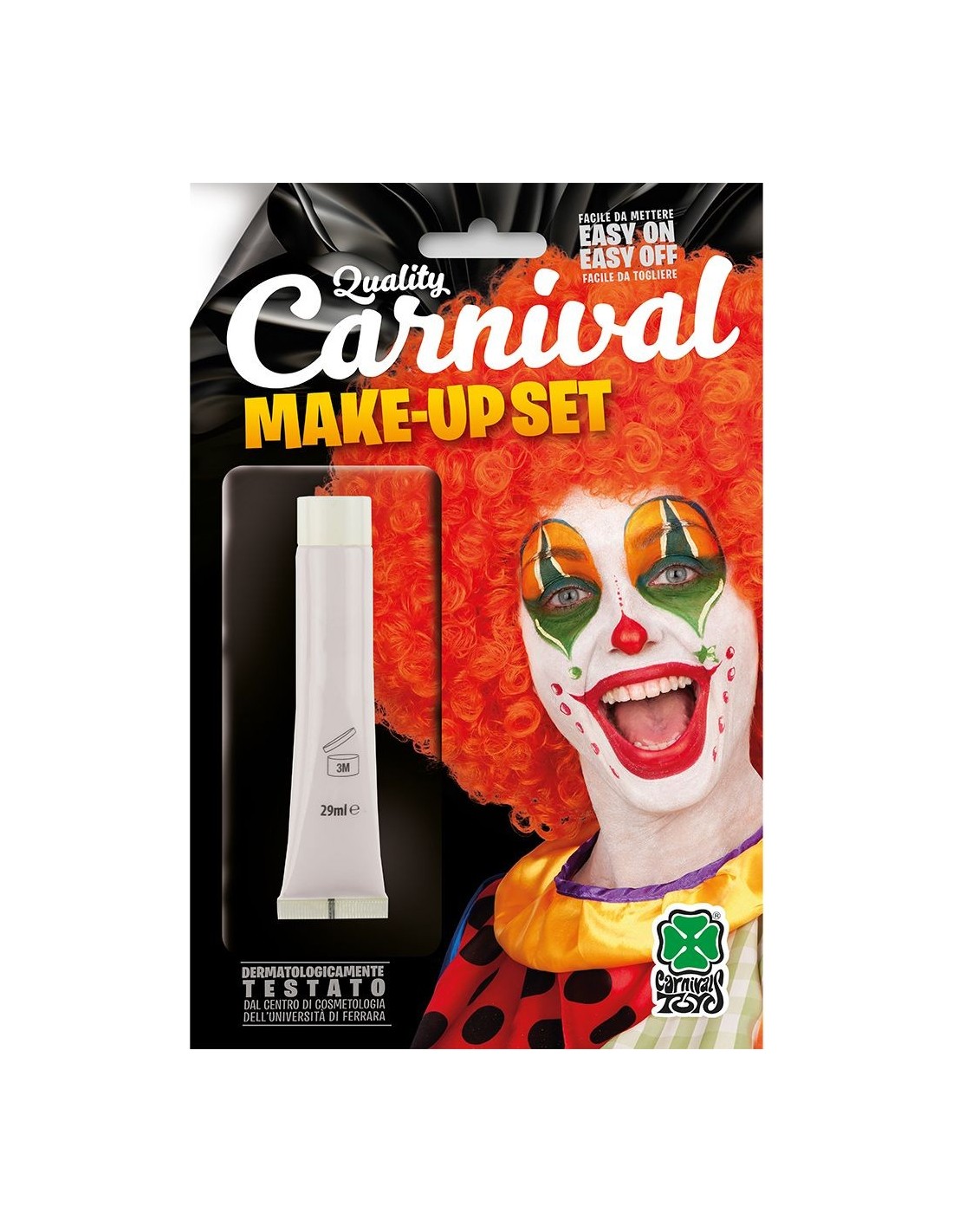 Il fondotinta bianco per clown è l'elemento essenziale per creare il trucco base perfetto per il tuo personaggio circense. Questo tubetto da 28,3ml circa contiene una formula cremosa e coprente che garantisce un bianco intenso e uniforme su tutto il viso. Il prodotto si applica facilmente con pennello o spugna, creando una base liscia e duratura per completare il make-up da clown con colori vivaci su occhi e bocca. La texture cremosa permette sfumature precise e un risultato professionale per ogni trasformazione.